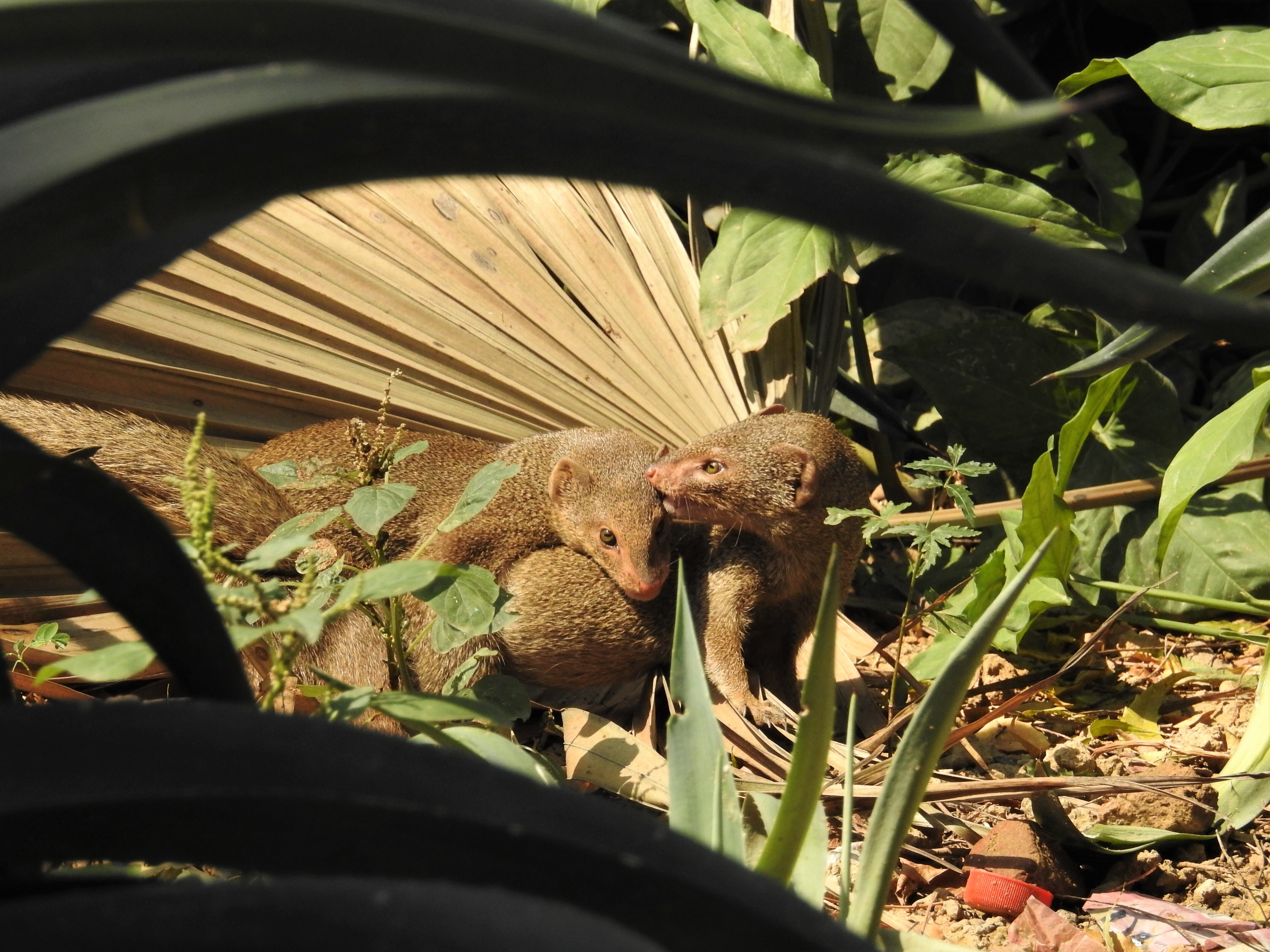 A pair of mongoose frolic in a sunny patch in Delhi’s Malcha market. (Photographer: Neha Sinha)