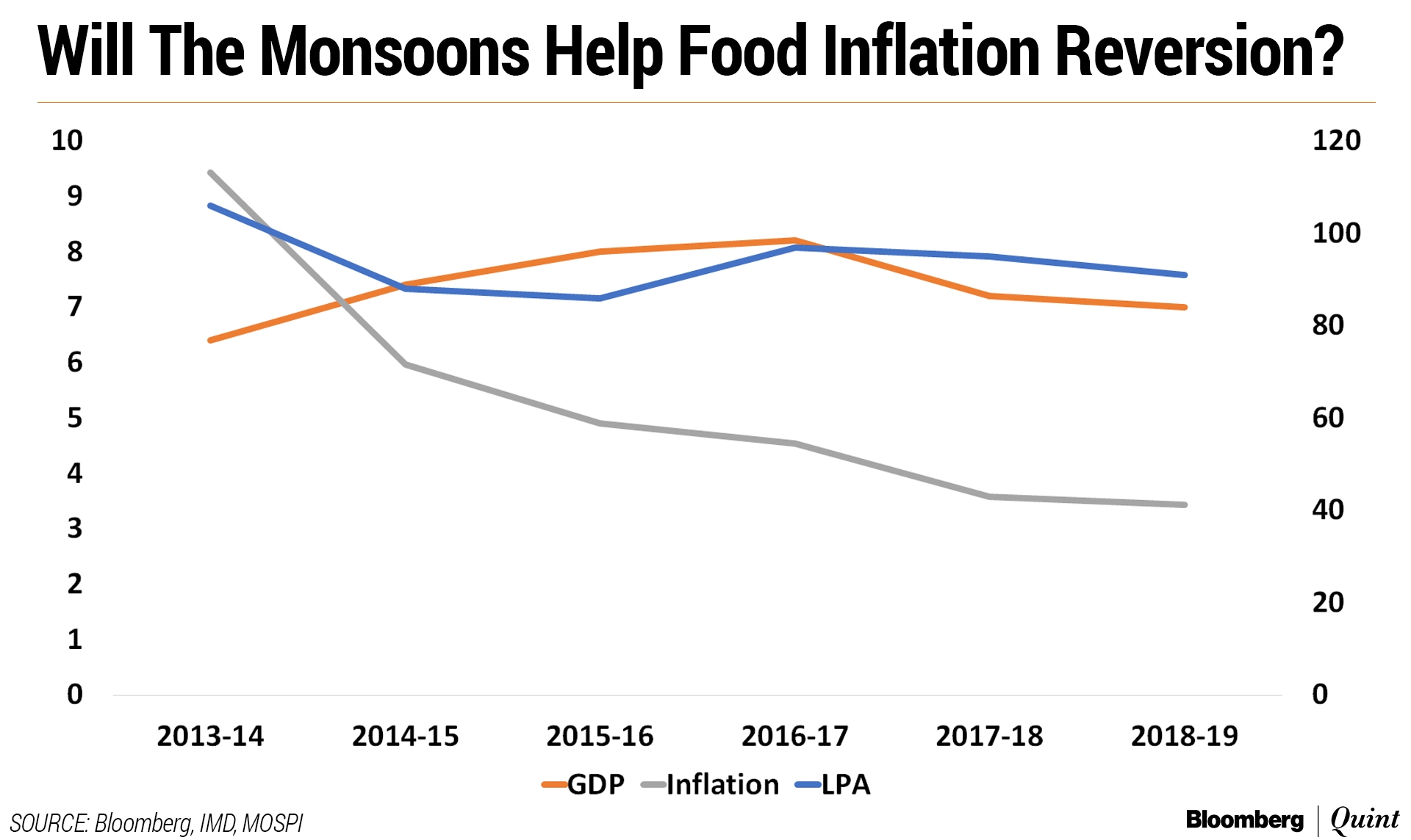 Since 2016, normal southwest monsoon rains have helped lower food prices, reining in consumer inflation. But that also led to increased rural distress because of a supply glut and lower farm prices.
