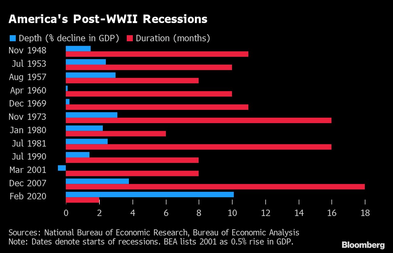 “The good news is there's a limit to how severe it's going to be,” said Nomura Securities senior US economist Robert Dent. “The bad news is it's going to be prolonged.” The former New York Fed analyst sees a roughly 2% contraction that begins in the fourth quarter and lasts through next year.