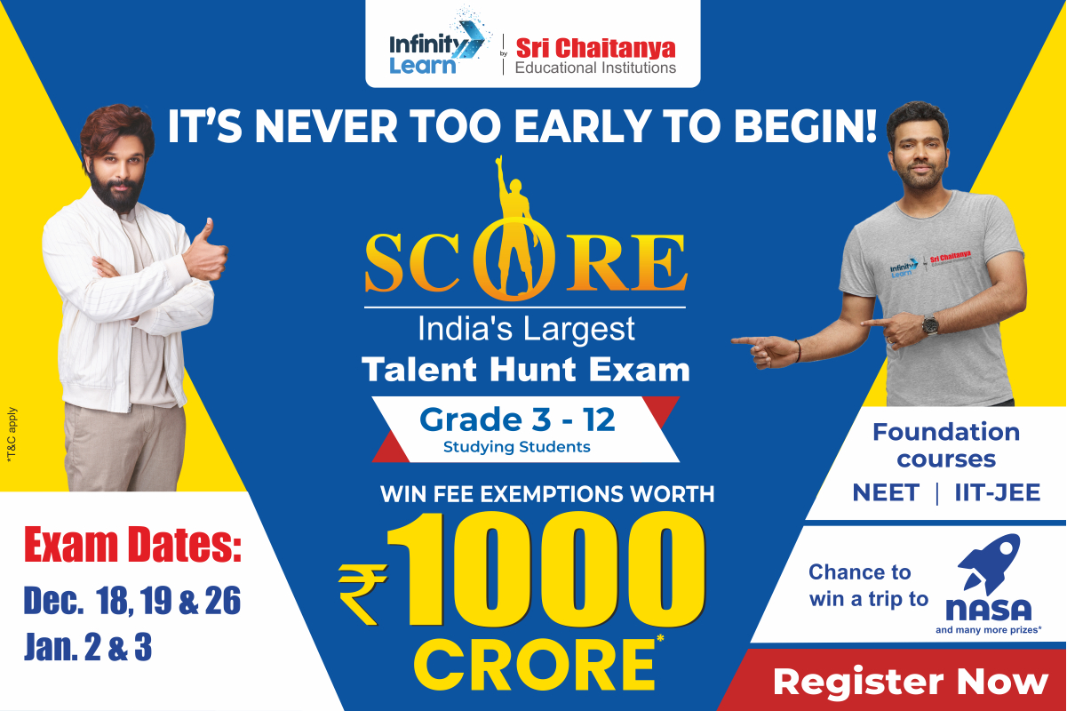 This talent spotting is conducted with the help of SCORE, which is India's largest scholarship and talent search test from Infinity Learn by Sri Chaitanya, conducted on a pan-India level.