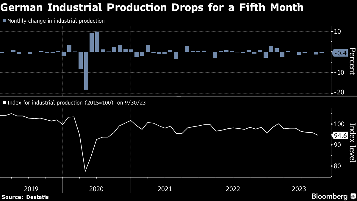 Industrial production in Germany and Italy stumbled at the start of the final quarter of the year, after France and Spain reported similar outcomes, pointing to a possible recession in the region.