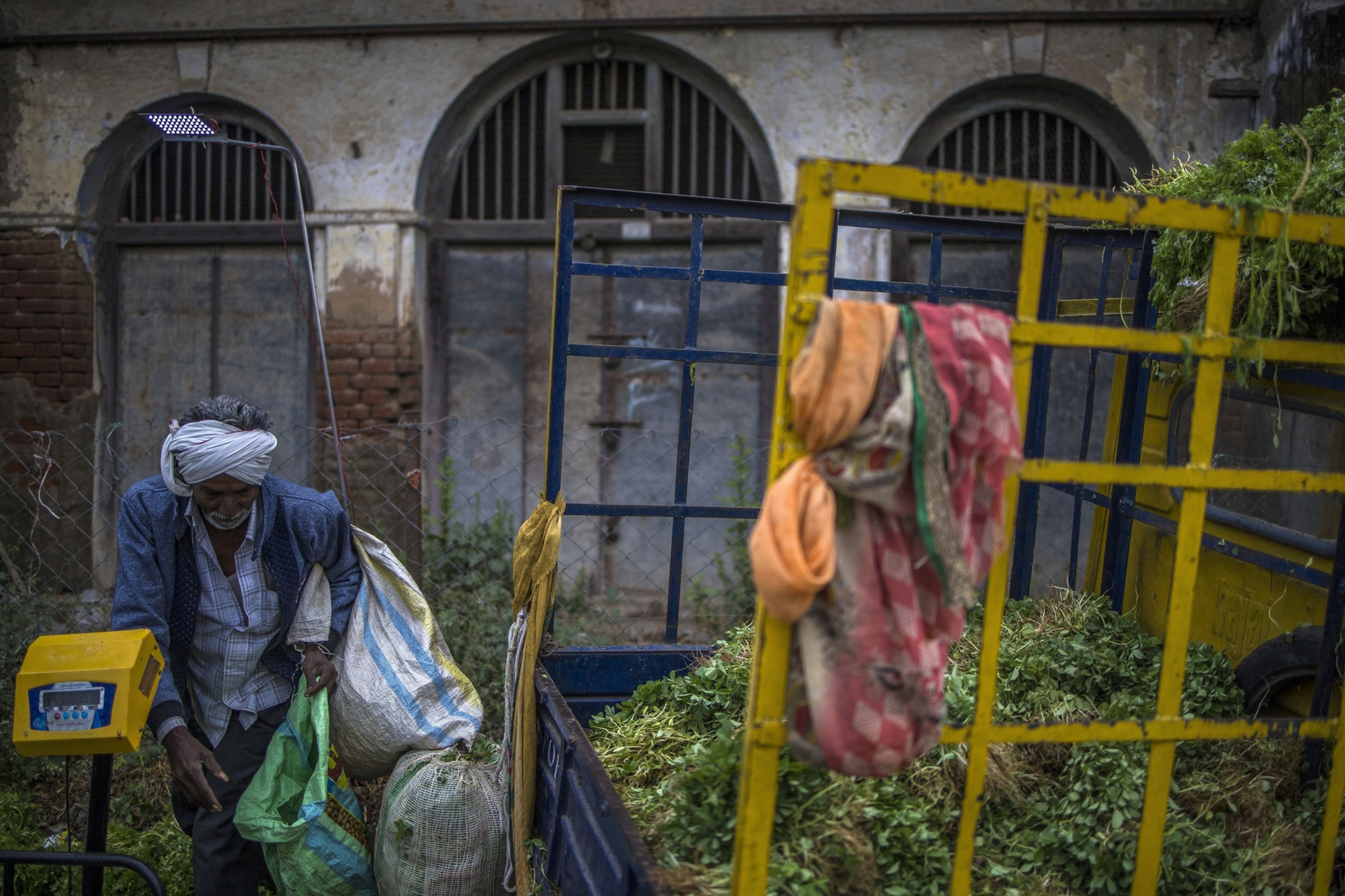 A vendor prepares a vegetable stall at a wholesale market in Amrawati, Maharashtra, India, on Thursday, Dec. 2, 2021. Photographer: Anindito Mukherjee/Bloomberg