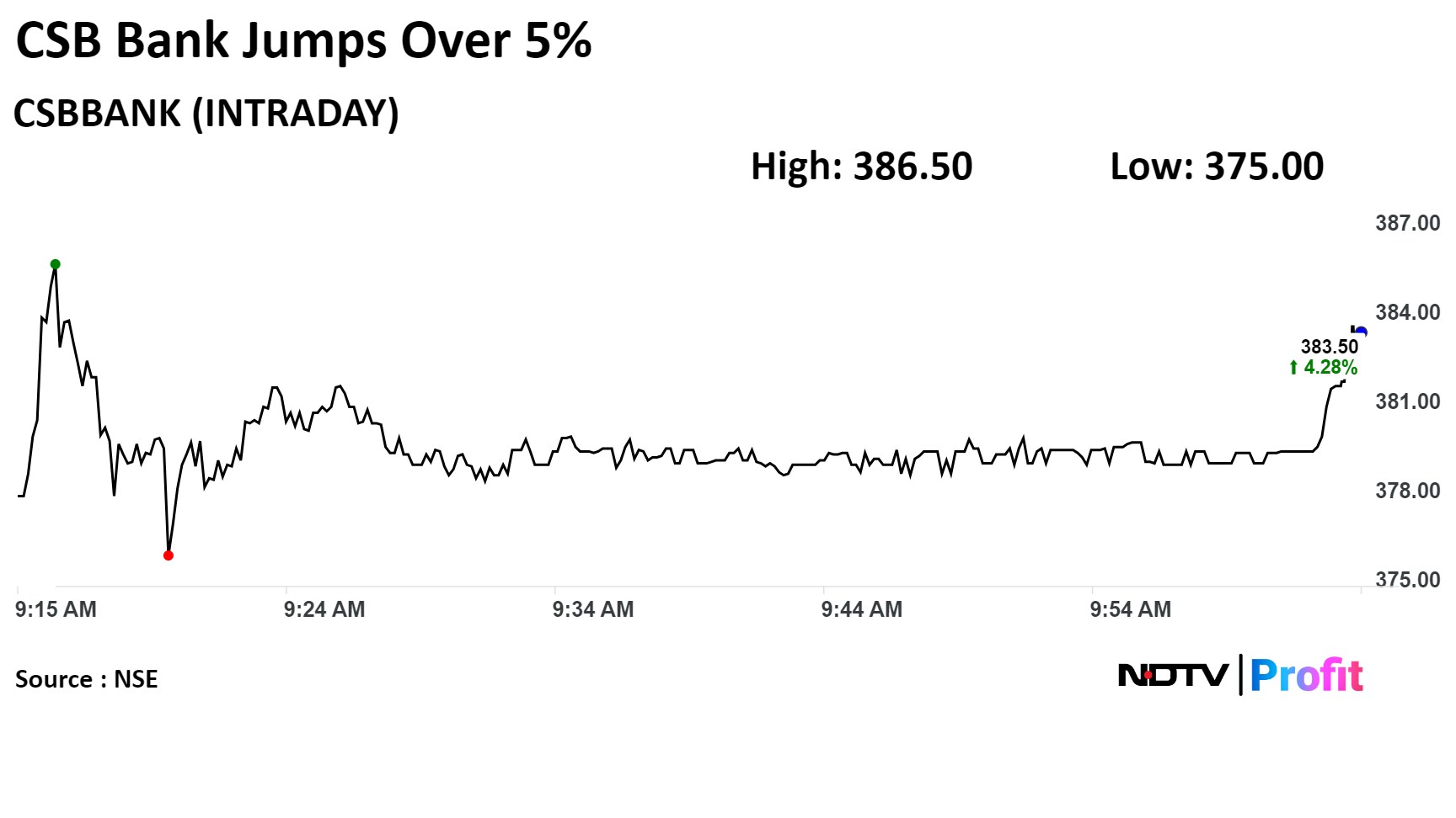 Shares of CSB Bank Ltd. rose to their highest level in nearly two months on Tuesday after it reported strong growth in Q4 advances and deposits.