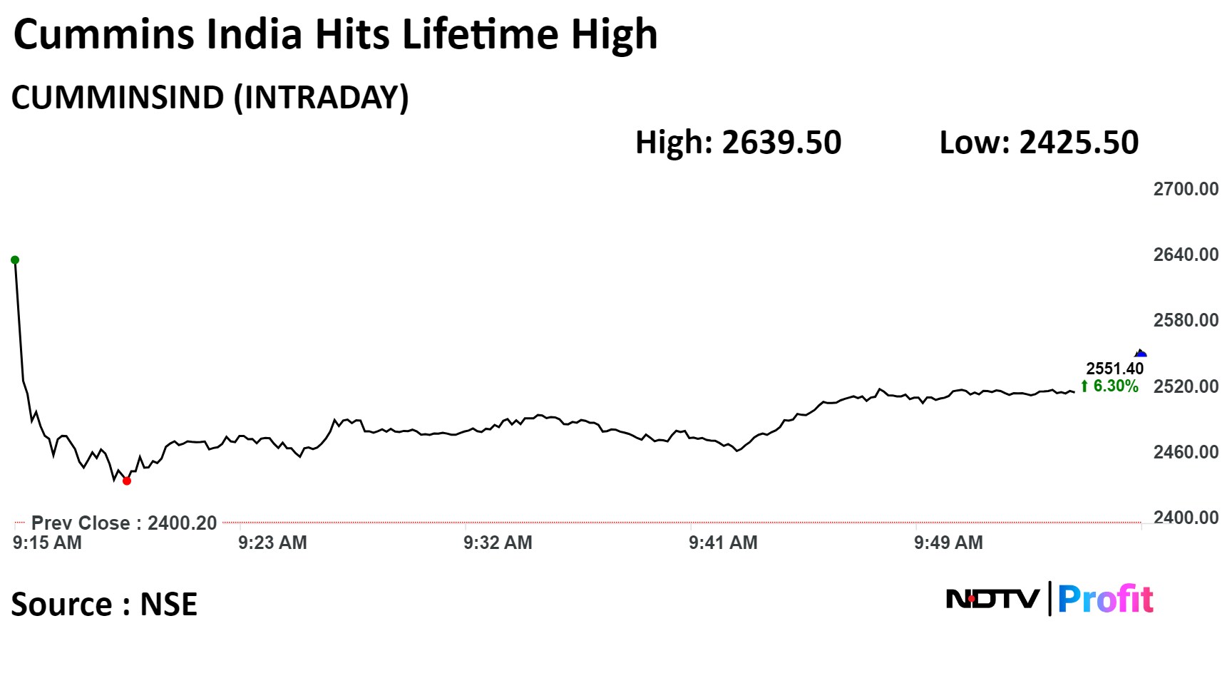 Shares of Cummins India Ltd. jumped 10% to hit record high on Thursday after its third-quarter profit beat analysts' estimates.