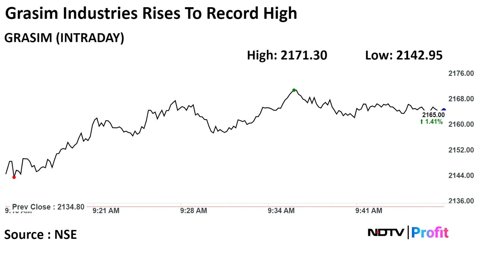 Shares of Grasim Industries Ltd. hit a record high on the first trading day of 2024 after it announced the commissioning of additional capacity at its Bharuch plant in Gujarat.