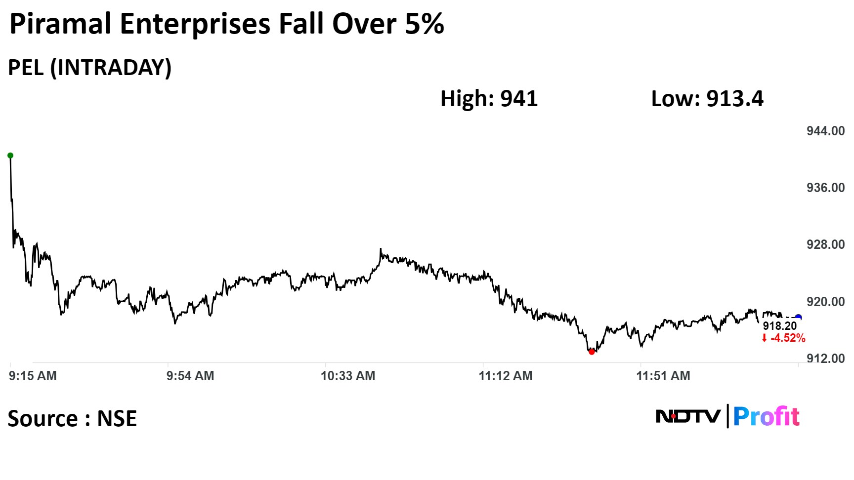 Shares of Piramal Enterprises fell as much as 5.14% before paring loss to trade 4.54% lower at 12:34 p.m. This compares to a 0.45% advance in the NSE Nifty 50.