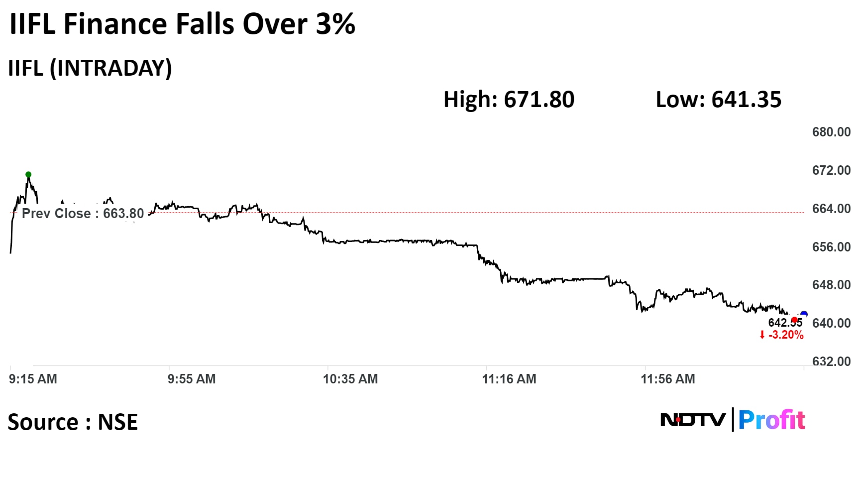 Shares of IIFL declined 3.7%, before paring some loss to trade 3.68% lower at 12:42 p.m. compared to a 0.45% advance in the NSE Nifty 50.