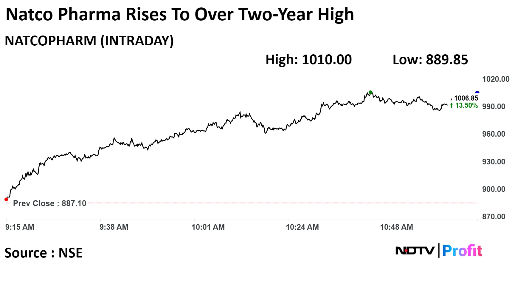 Shares of Natco Pharma Ltd. jumped over 13% on Friday after the company raised its net profit guidance for the ongoing financial year, and announced new product launches.