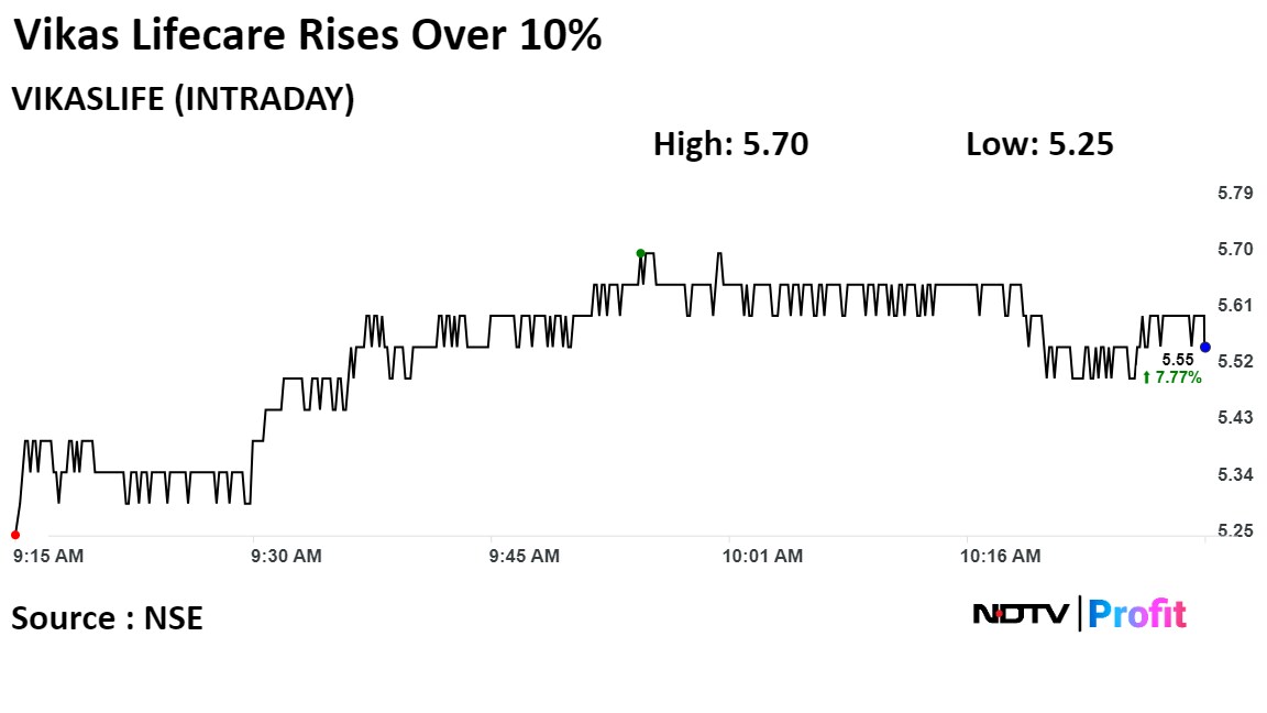 Shares of Vikas Lifecare Ltd. rose on Thursday after it acquired land in Rajasthan for capacity expansion and augmentation of manufacturing operations.