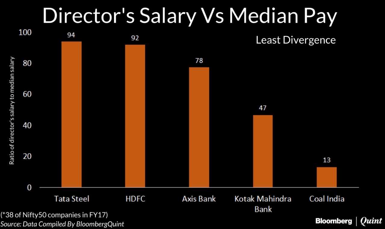 - The salary gap of top officials of Axis Bank, HDFC and Tata Steel was in the range of 78 to 94 times compared to the median pay.