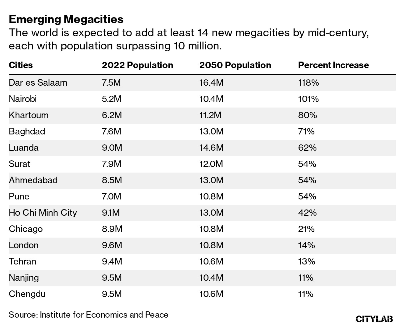 These growing cities, each with populations surpassing 10 million by 2050, add to 33 existing megacities. But ecological threats and lack of societal resilience make their rise — and the rapid pace of urban expansion more generally — unsustainable, warns a report published Wednesday by the global think tank Institute for Economics and Peace.