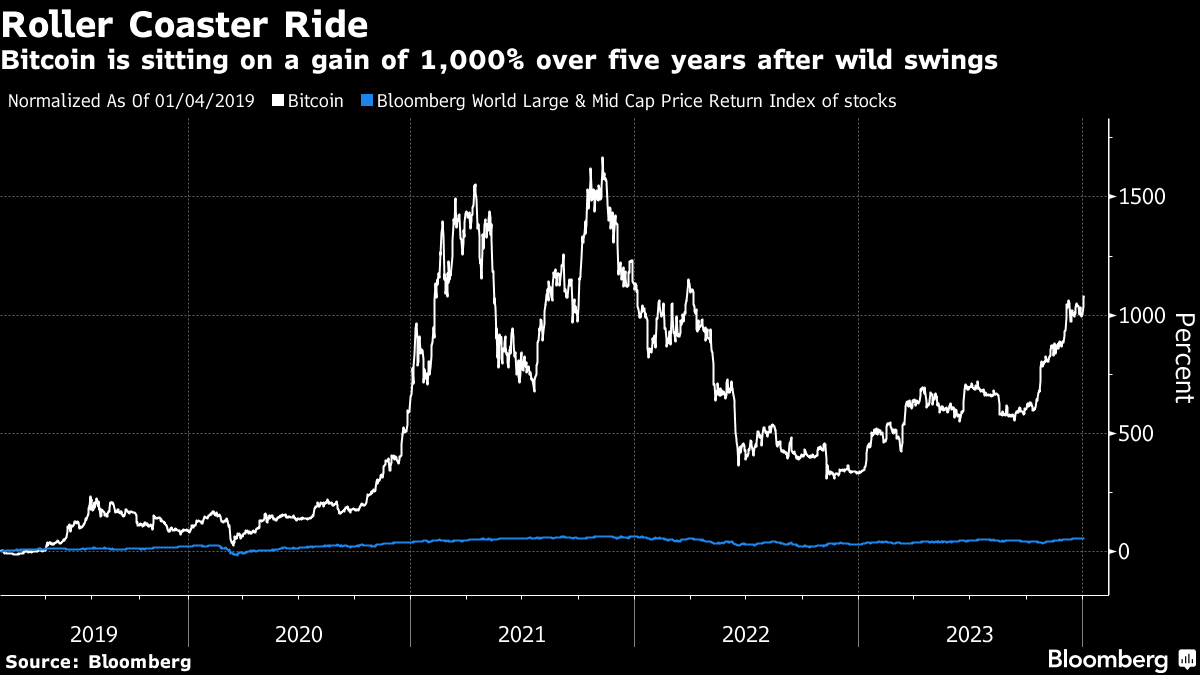 (Bloomberg) -- Bitcoin has sprinted to a more than 6% gain over the first three days of January, bucking a dour start to the year in global markets.