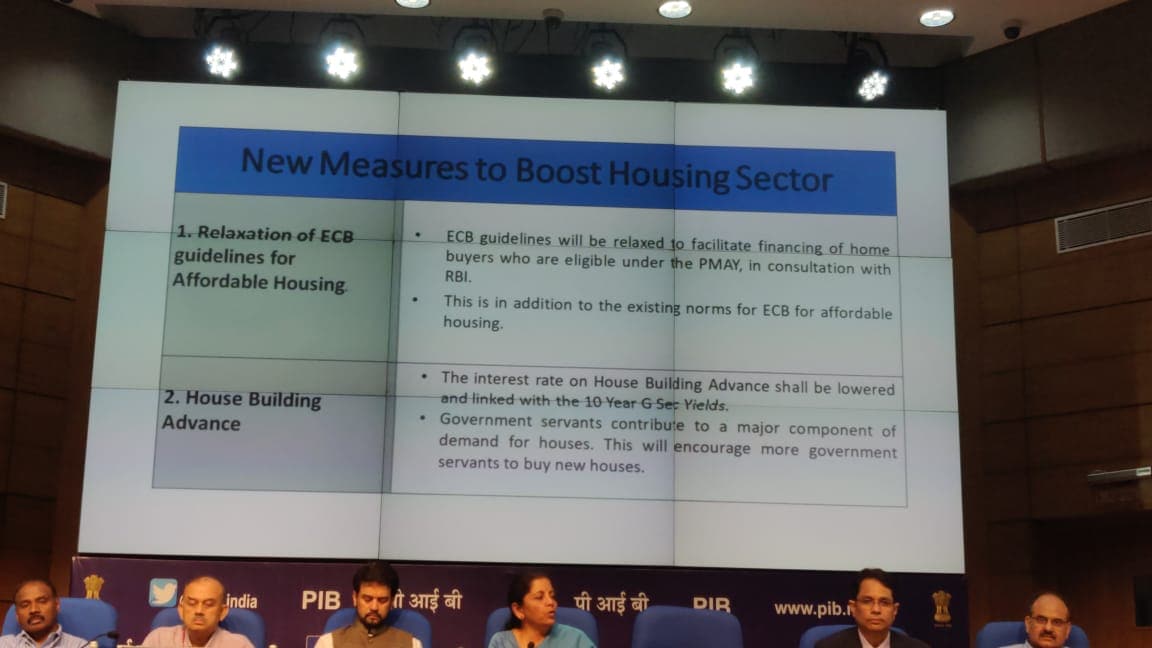 Finance Minister Nirmala Sitharman announced set of measures aimed at providing relief to the housing sector and boosting exports.