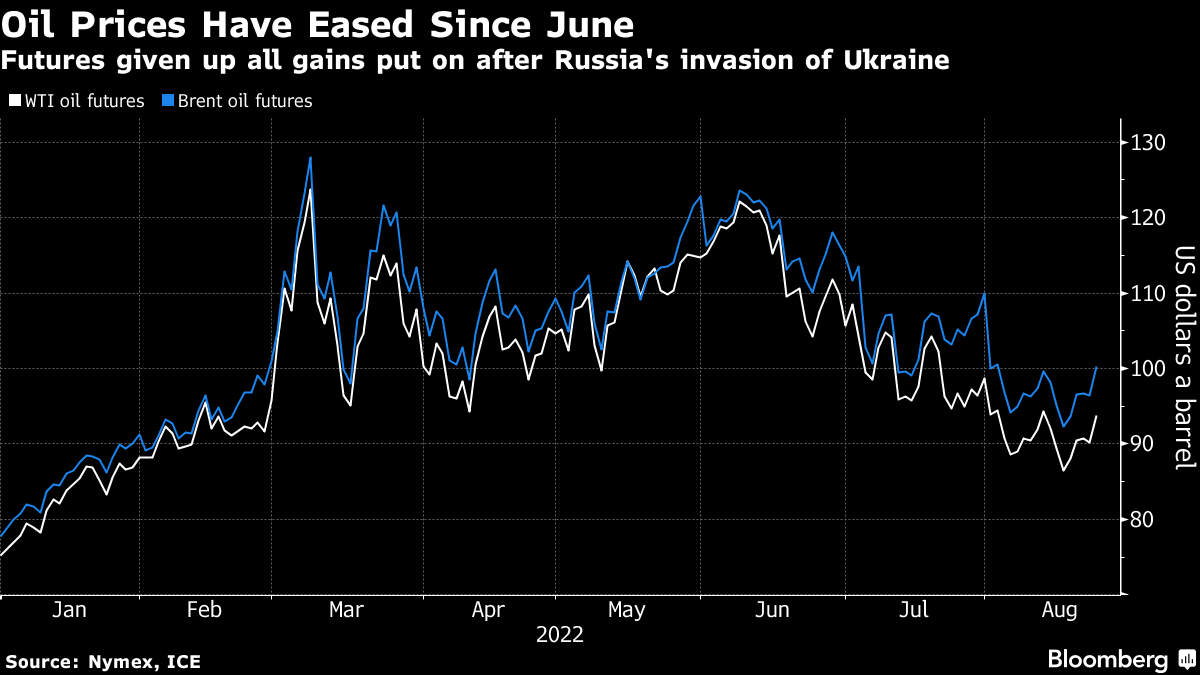 Brent oil, the global benchmark, settled Tuesday above $100 a barrel for the first time since the beginning of August, although it has come off a recent peak near $140 in March.