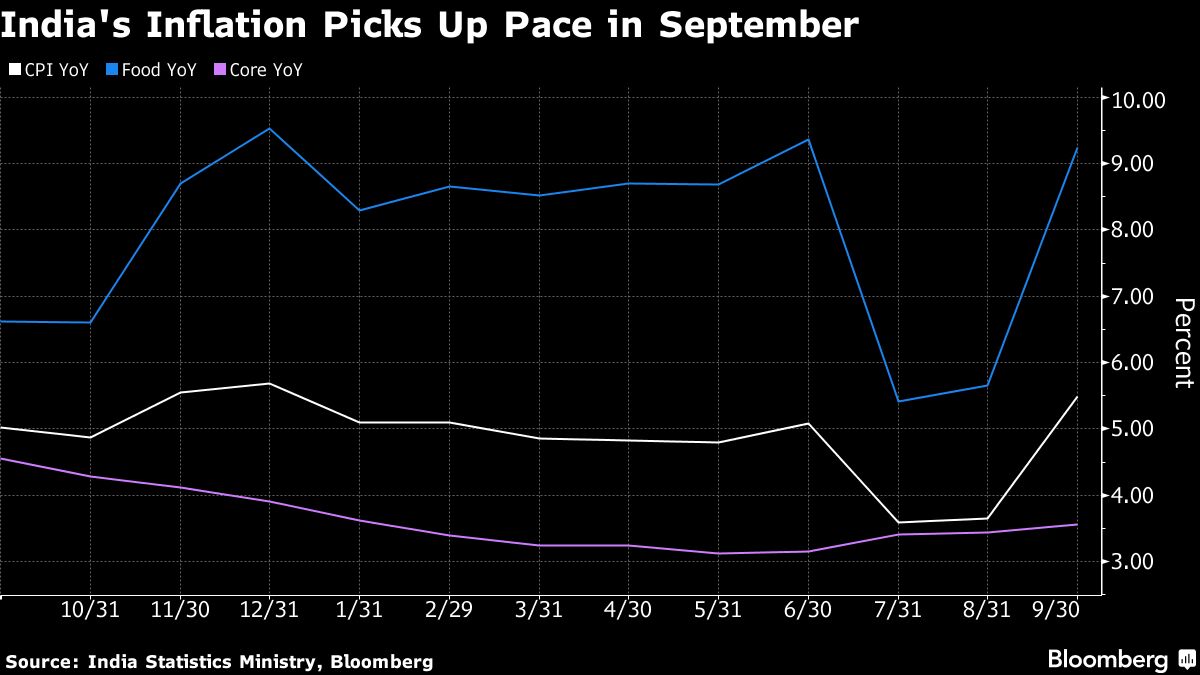 Several economists, including Upasna Bhardwaj of Kotak Mahindra Bank Ltd. and Gaura Sen Gupta of IDFC First Bank Ltd., say the Reserve Bank of India is unlikely to cut interest rates in December as previously predicted, after data Monday showed consumer prices rose at the fastest pace this year in September. Banks like Goldman Sachs Group and Deutsche Bank AG said they still expect the RBI to ease in December, although the risk has increased it may be pushed out to next year.
