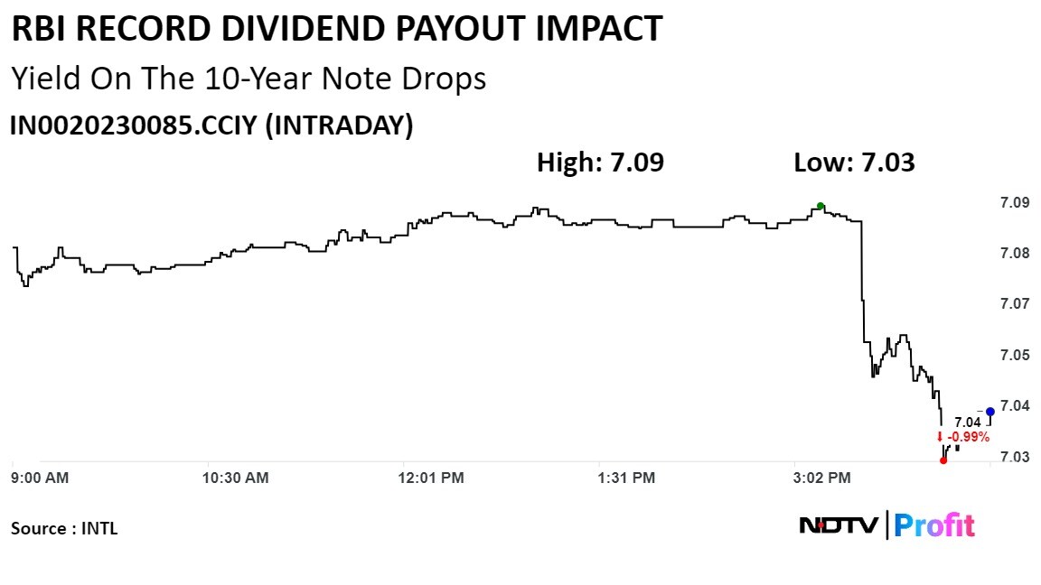 The announcement of the record dividend sent the yield on the 10-year benchmark government bond to 7.05%, down 3 basis points.