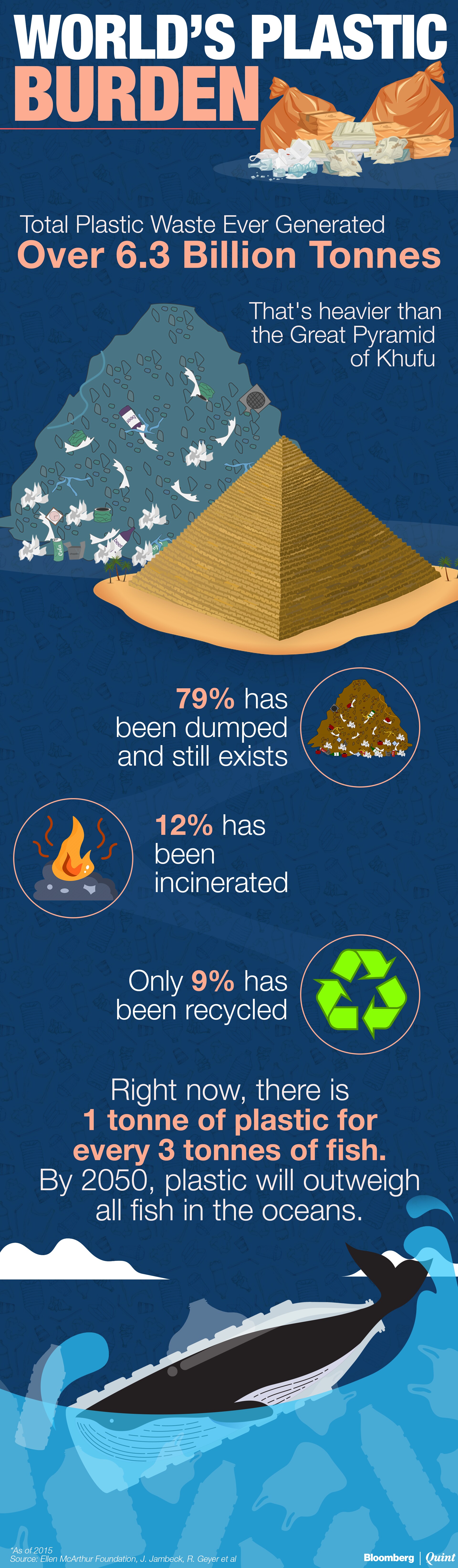 Over 6.3 billion tonne of plastic waste has been generated in the world so far, according to a study by Britain's Ellen McArthur Foundation. That's equivalent to the average weight of more than 1 billion African bush elephants. Around 90 percent of this plastic will not decompose for at least 500 years—polluting food, water and air.