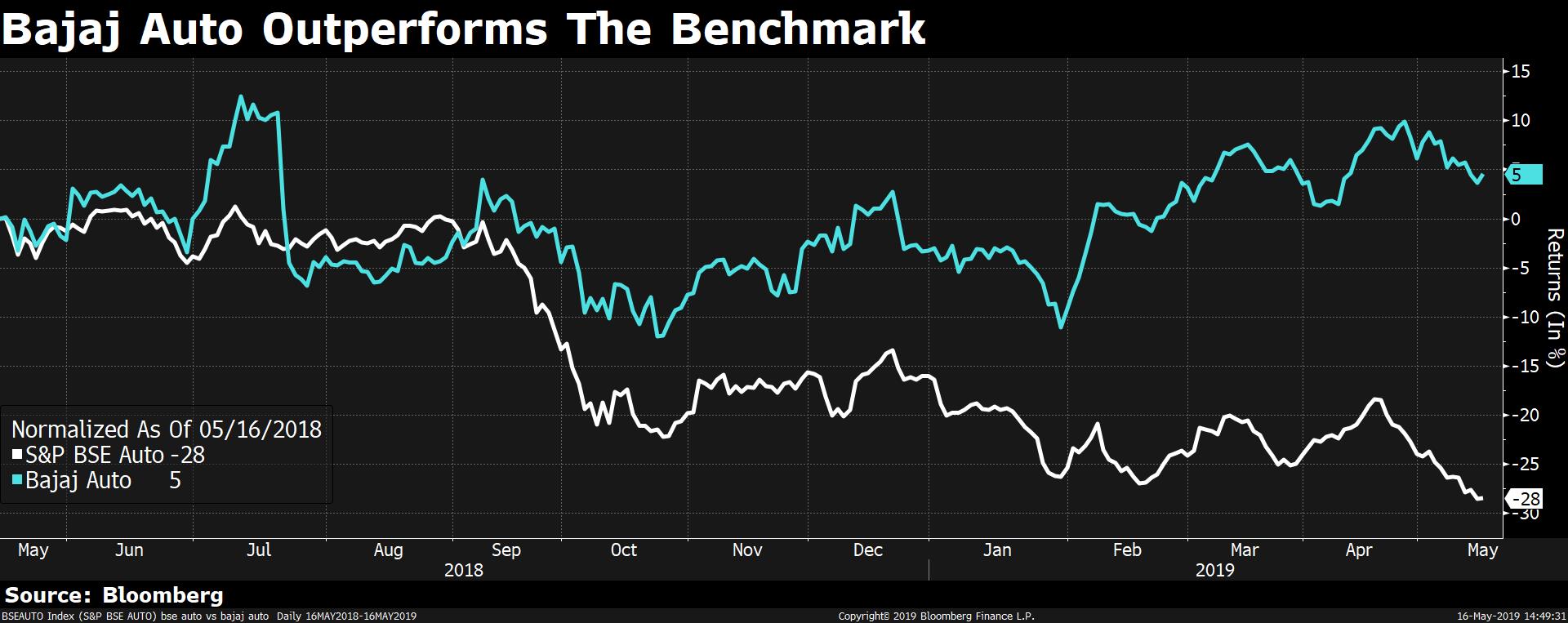 Shares of the maker of Pulsar motorcycles rose 4 percent and 8.4 percent in the last six months and one year, respectively. That makes it the only automaker to return gains. Shares of all its peers fell and the benchmark BSE Auto Index declined during the two periods.