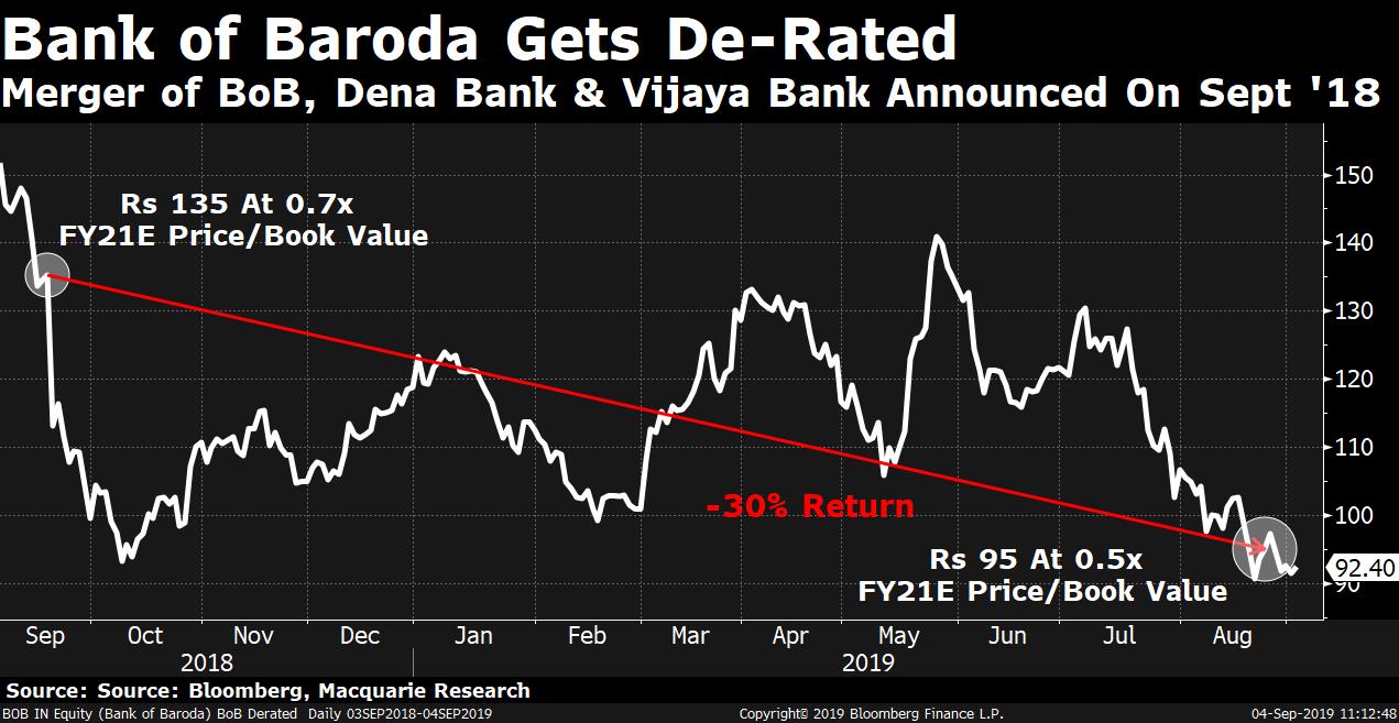 What does the experience of Bank of Baroda suggest? It looks like from a minority shareholder perspective, there is no value generated even a year after the merger.