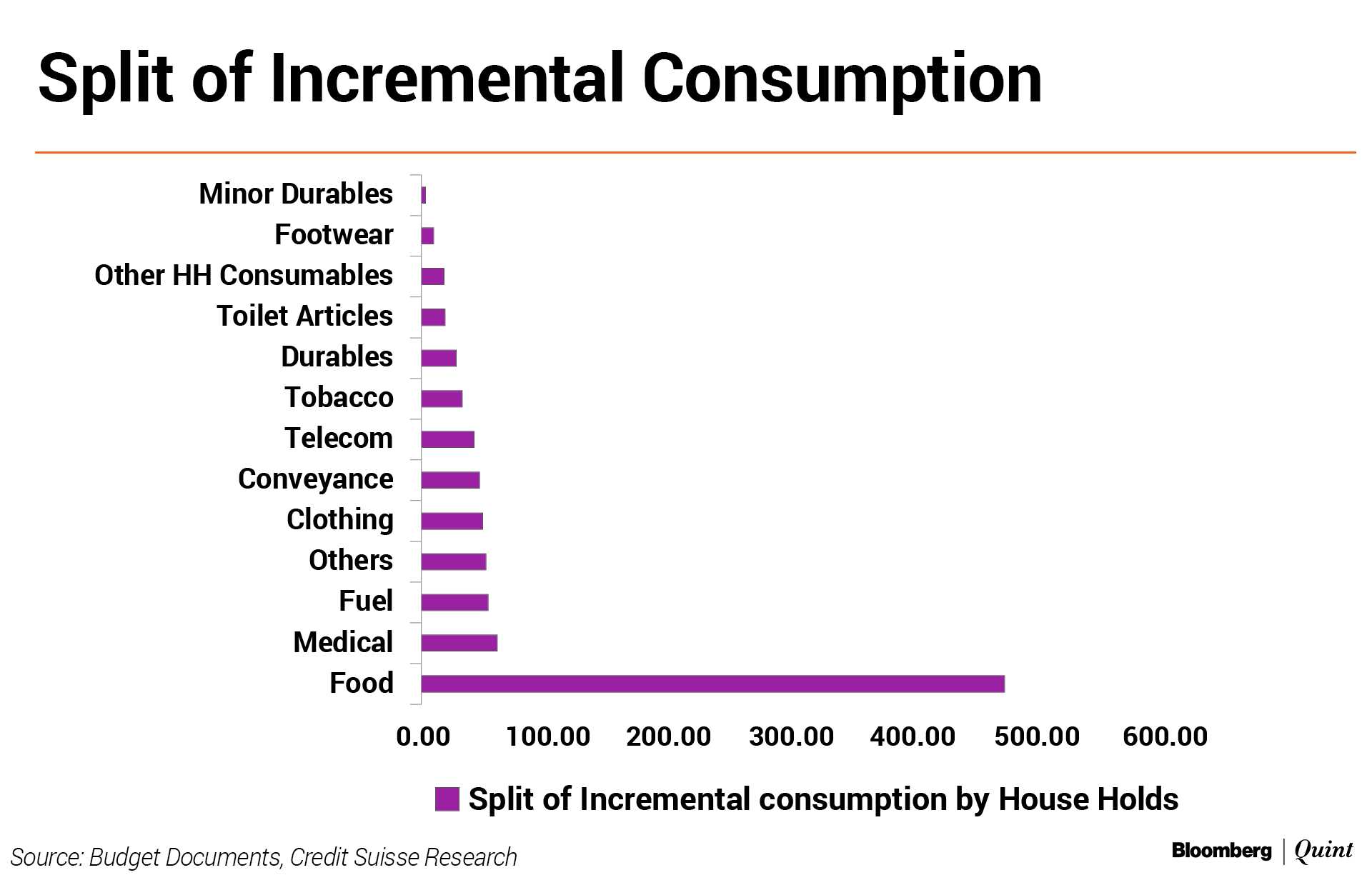 A lion's share of the incremental cash given to farmers is spent on food expenses. The following infographic shows the impact of farm income transfer on their consumption spending pattern. Majority of the rural households spend 59 percent of the incremental consumption on food expenses, the Credit Suisse report said.