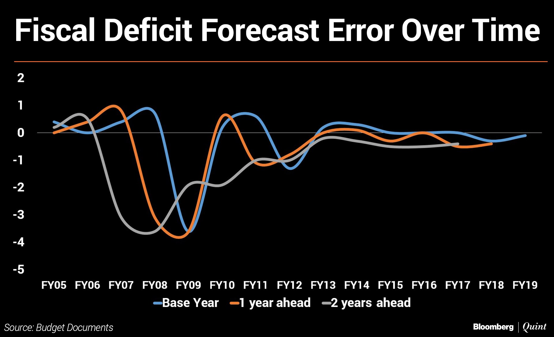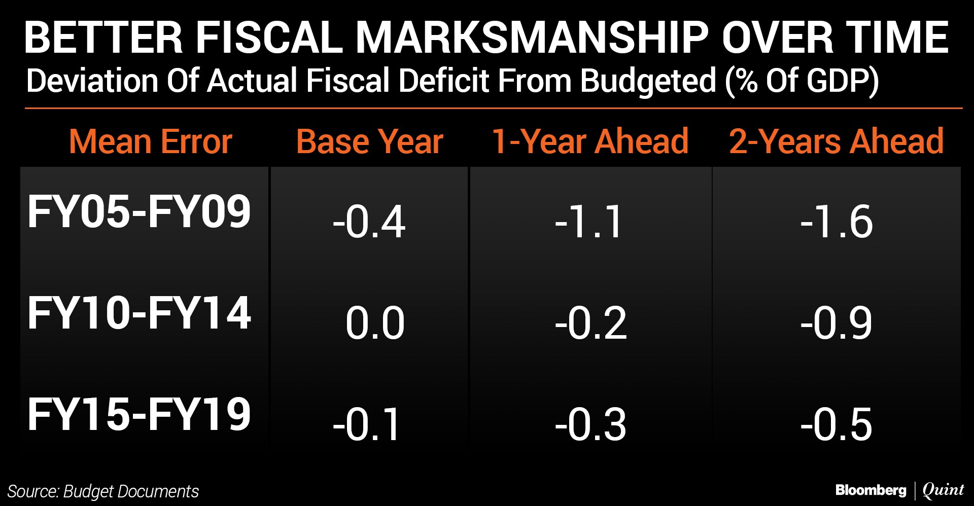 Historically, the gap between the actual fiscal deficit and the target has been quite high and increases with the time period.