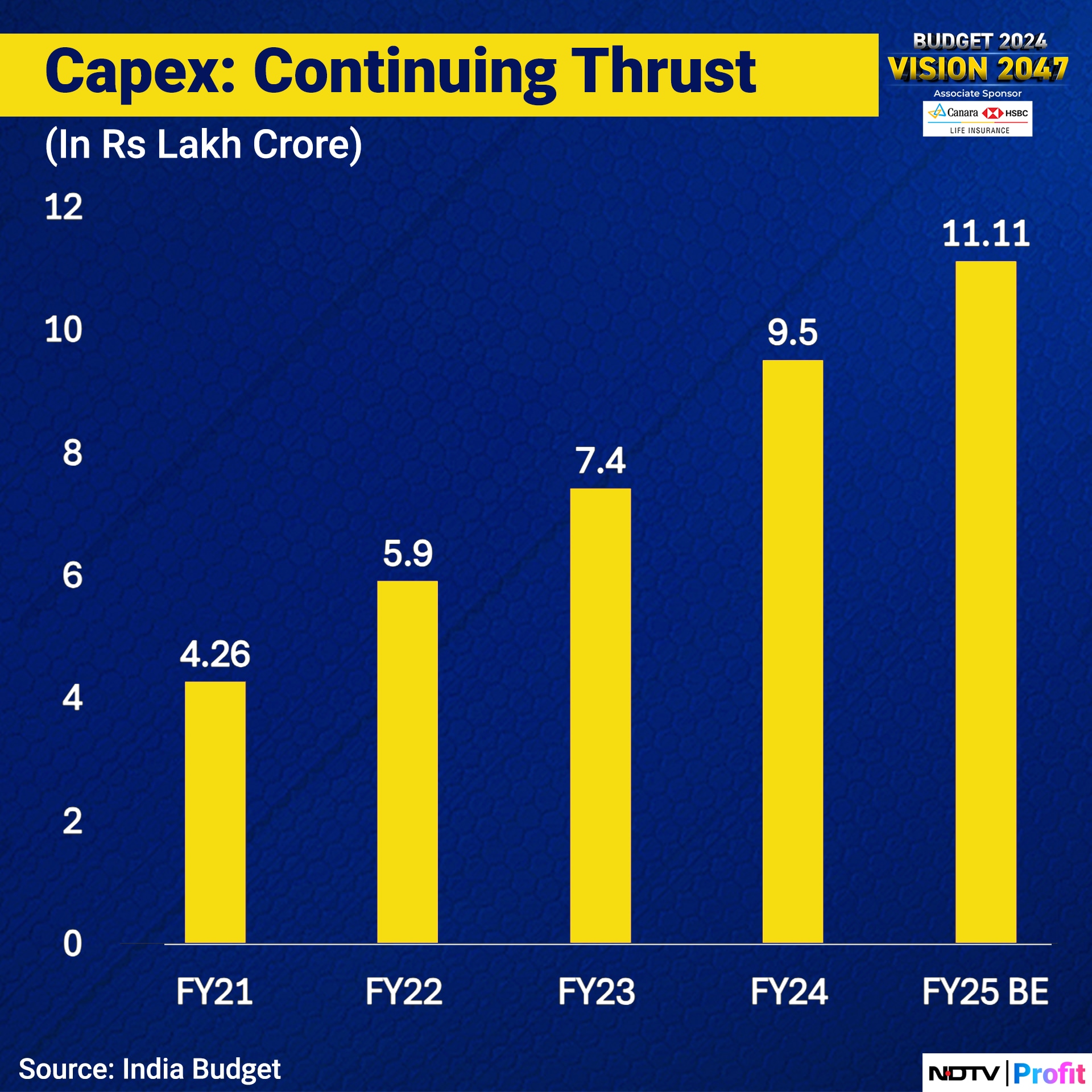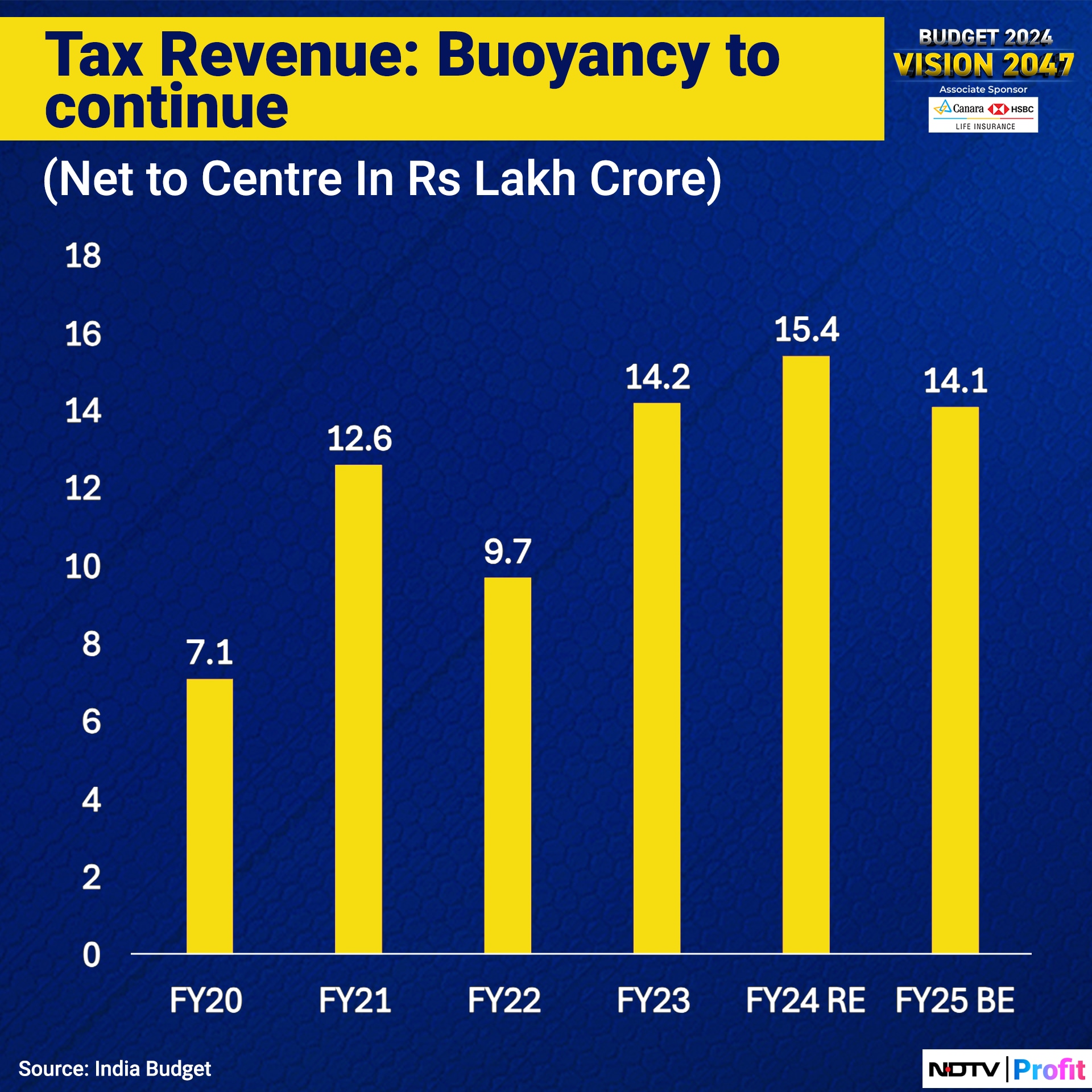 Revenue receipts are estimated to rise 15% to Rs 31.3 lakh crore, net tax revenue to the Centre is pegged to rise 11% to Rs 25.8 lakh crore.