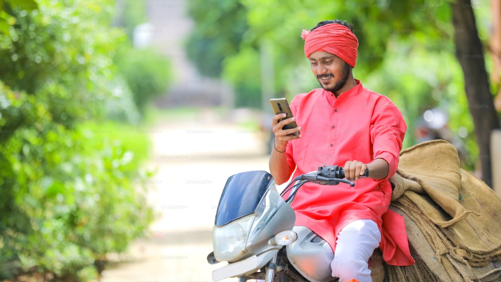 A man uses a mobile phone astride his motorcycle. (Photo: Unsplash)