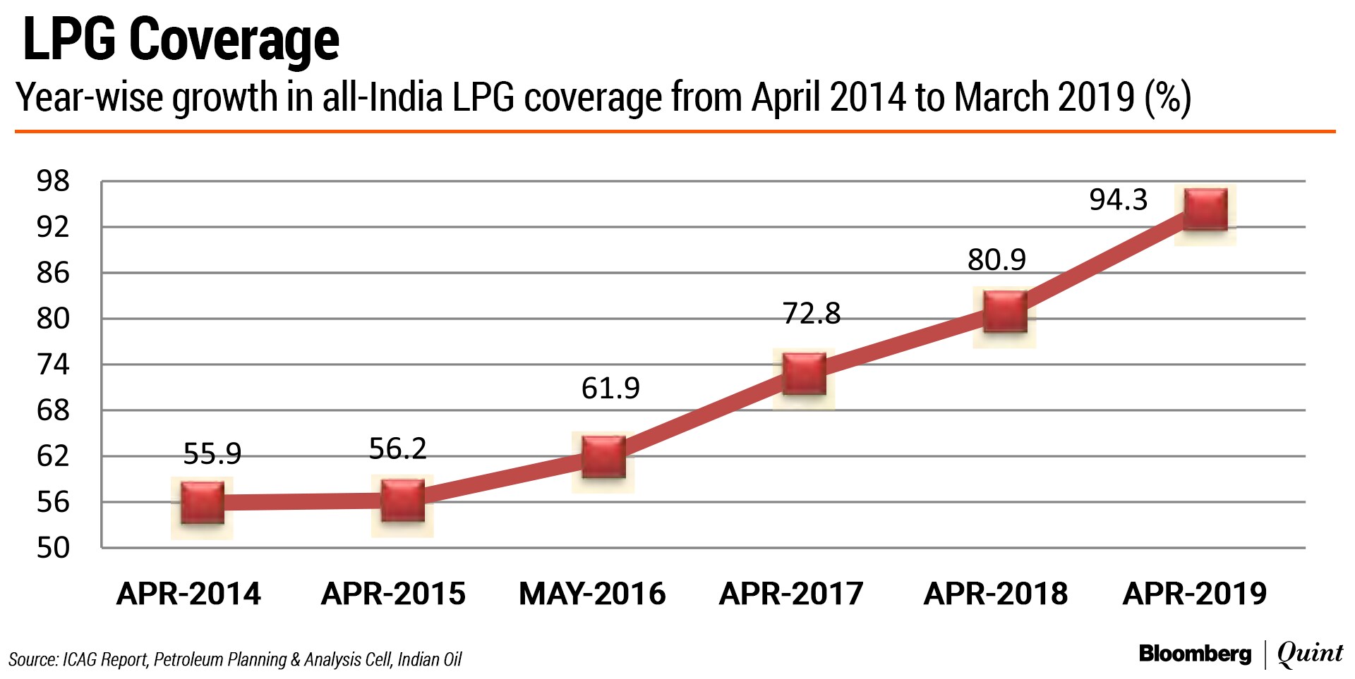 According to government data, all India LPG coverage increased to 94.3 percent as on April 1, 2019 from 55.90 percent as on April 1, 2014.
