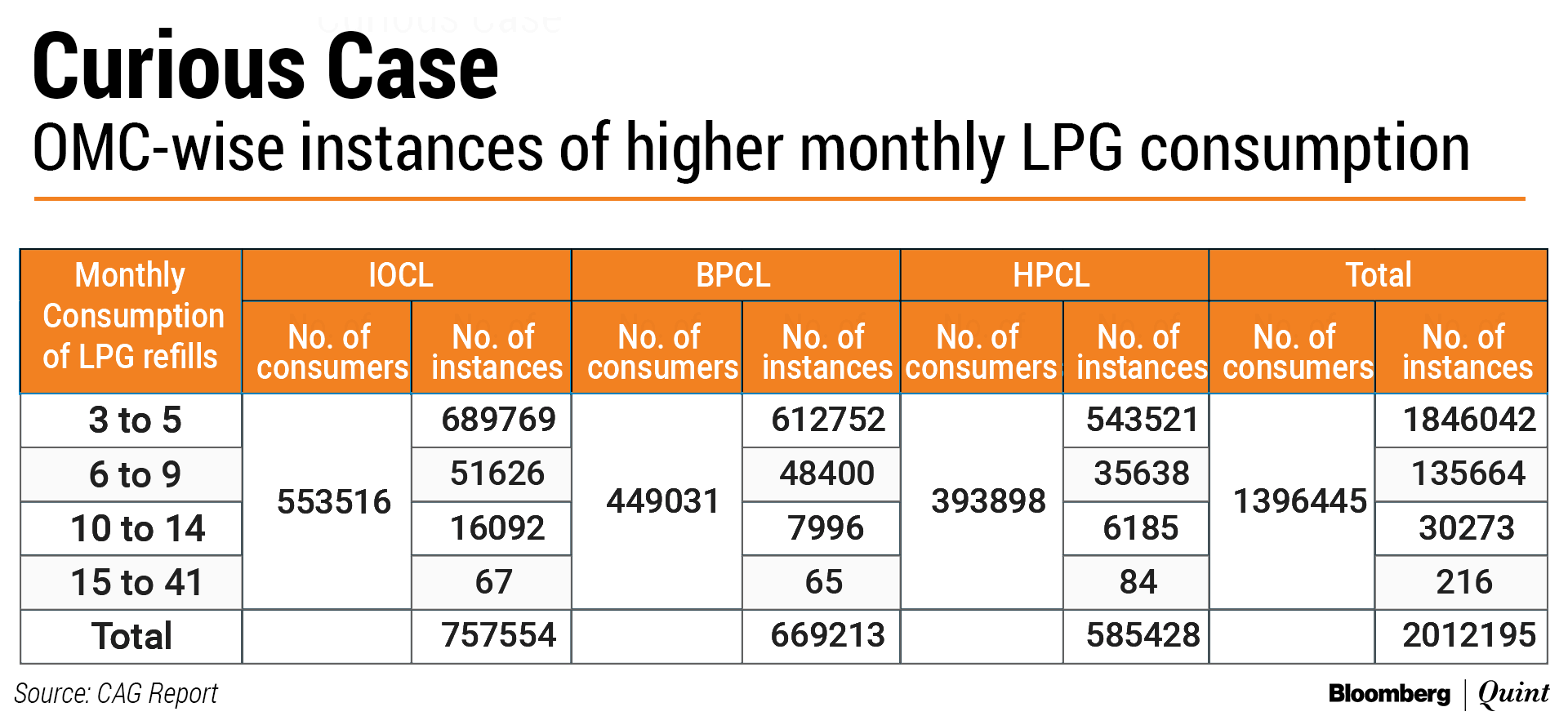 CAG report, however, found 19.8 lakh instances of three-nine LPG refills a month among high-consumption households.