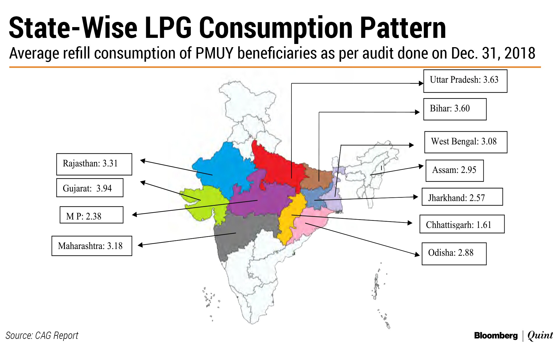 By Dec. 31, last year, 3.18 crore beneficiaries got 3.21 refills a year. Of these, 56 lakh never made a second refill and 33 percent consumed one to three refills, according to CAG audit.