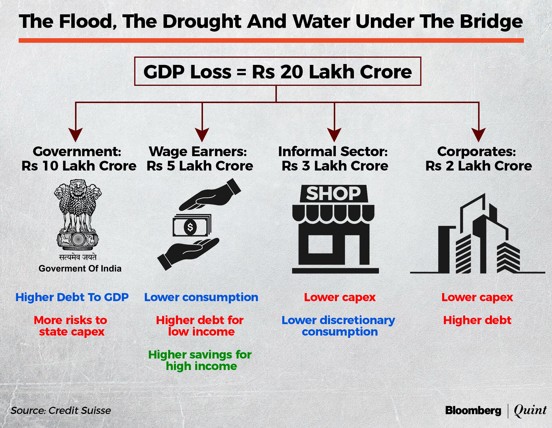 The government and wage earners took bulk of the Rs 20-lakh-crore hit to the Indian economy, which saw a record contraction in the quarter ended June, according to Credit Suisse.