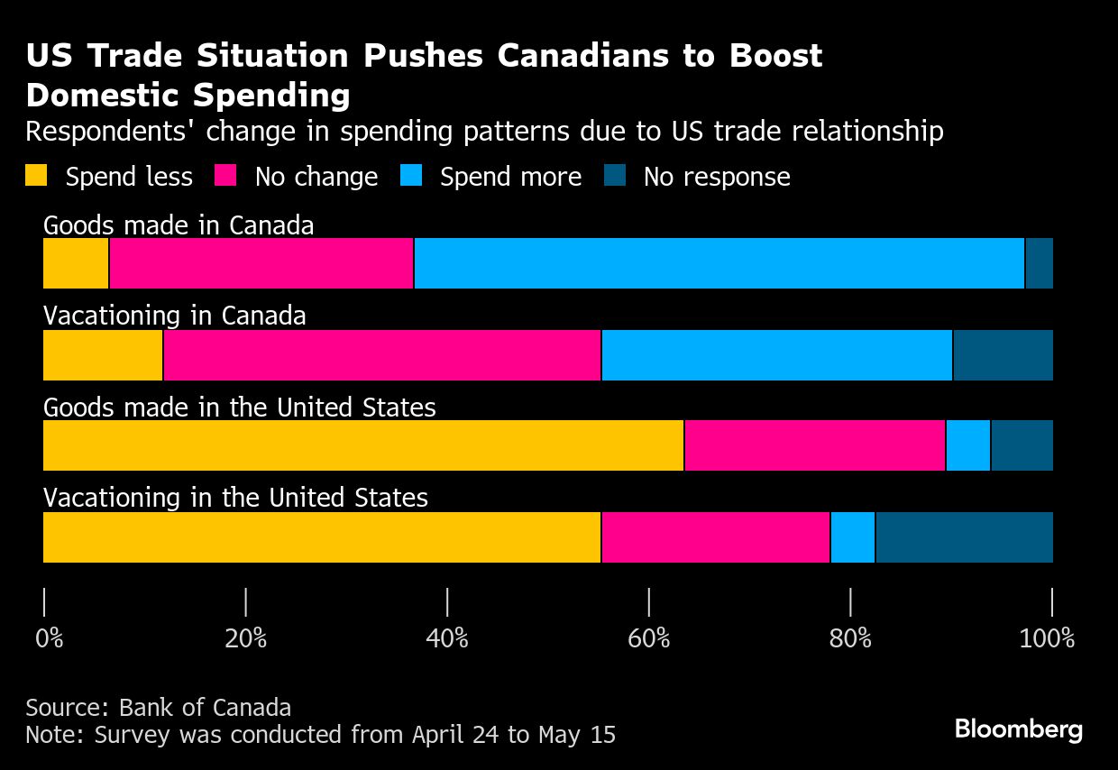 Canadians say they're ramping up their boycott of US travel and products in response to tariffs, and the country's central bank is taking notice.