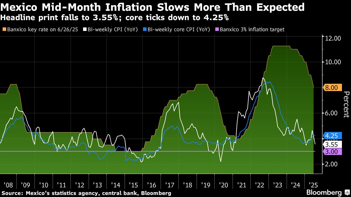 Mexico's annual inflation slowed more than expected in early July, supporting the central bank's decision to leave the door open to further easing after last month's interest rate cut.