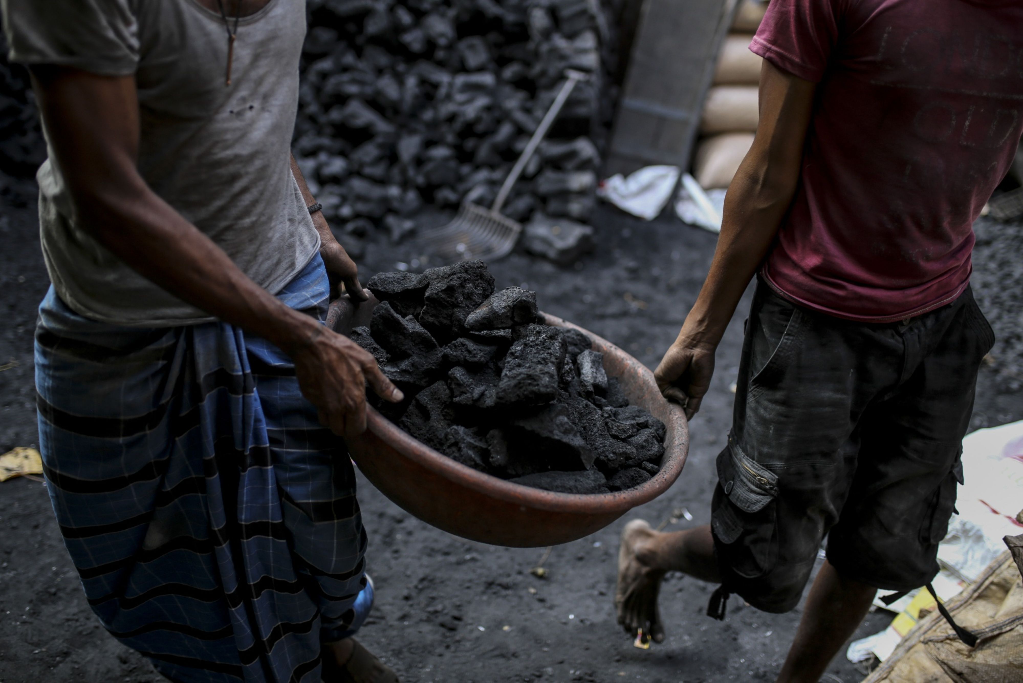 Workers carry a bowl of coal at a coal wholesale market in Mumbai, India. (Photographer: Dhiraj Singh/Bloomberg)