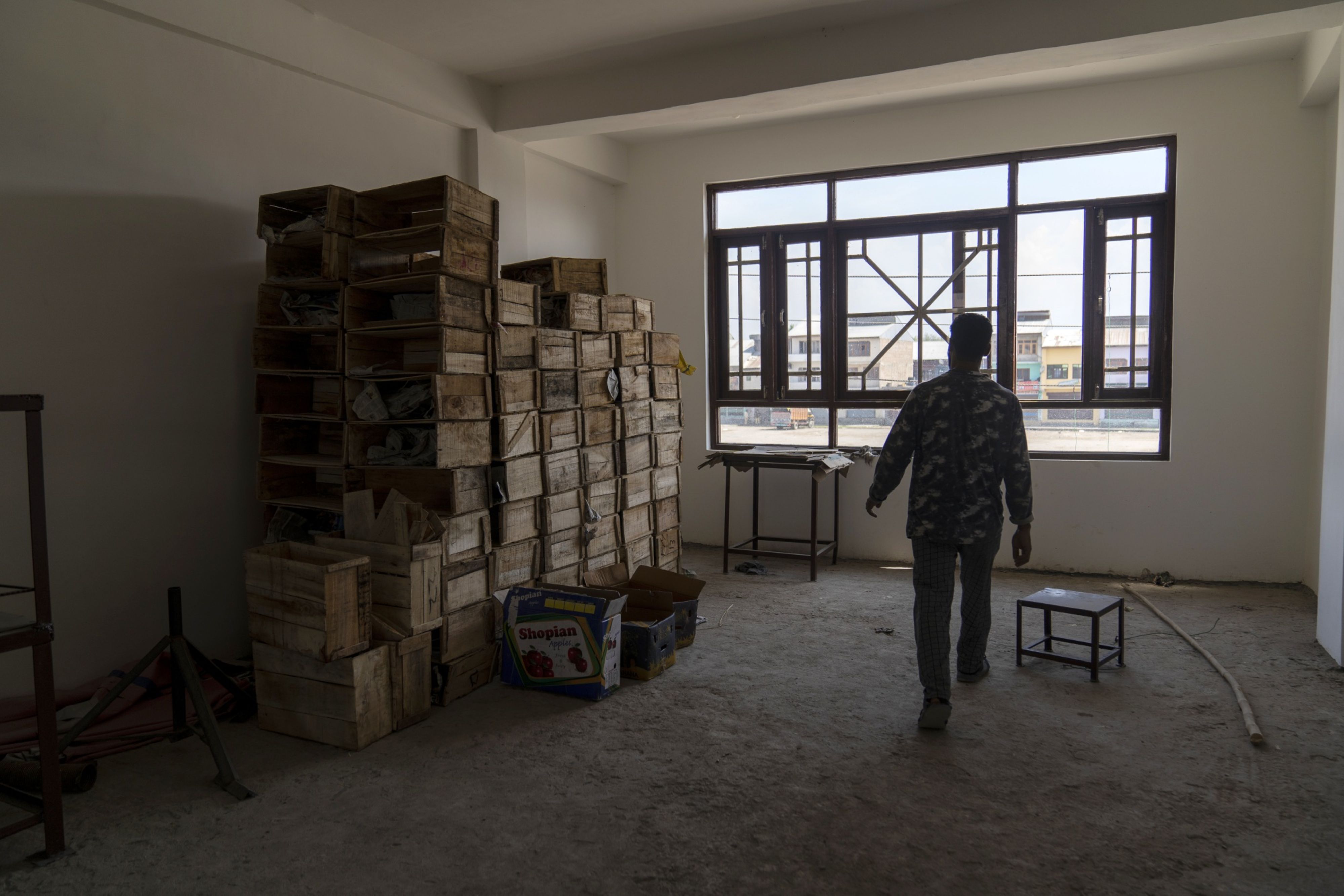 A vendor walks through a closed store in the shutdown Parimpora vegetable and fruit market in Srinagar, Jammu and Kashmir, India. (Photographer: Sumit Dayal/Bloomberg)