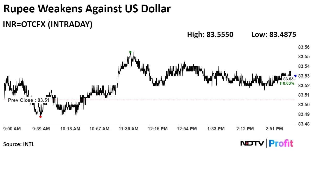 The local currency weakened by 3 paise to close at Rs 83.53. It had opened at Rs 83.52 against the greenback, according to Bloomberg. It had closed at Rs 83.50 on Tuesday.