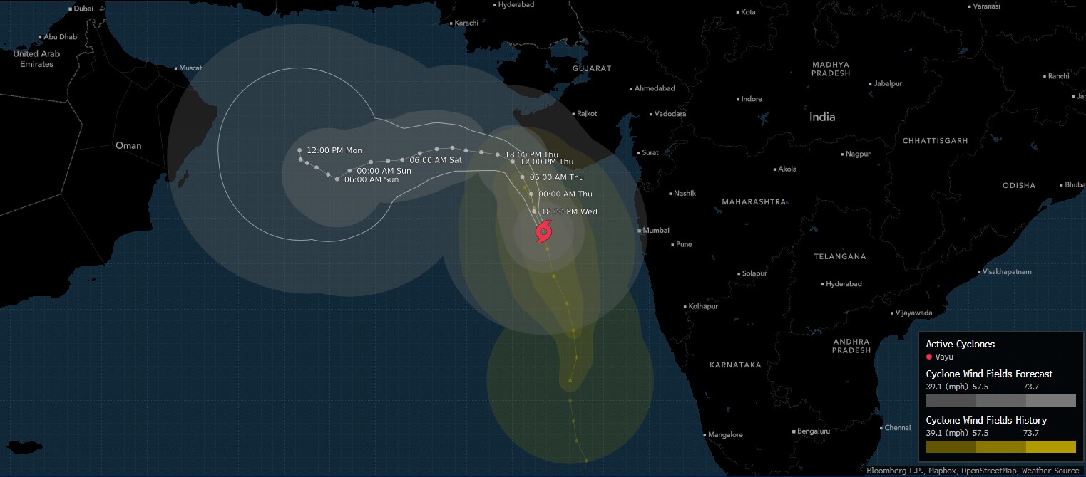 "It is very likely to move north-northwestwards for some time and then northwestwards skirting the Saurashtra coast affecting Gir Somnath, Diu, Junagarh, Porbandar and Devbhoomi Dwarka with wind speed between 135 and 145 kmph, gusting to 160 kmph from June 13 afternoon," the Cyclone Warning Division said in its 8:30 a.m. bulletin.