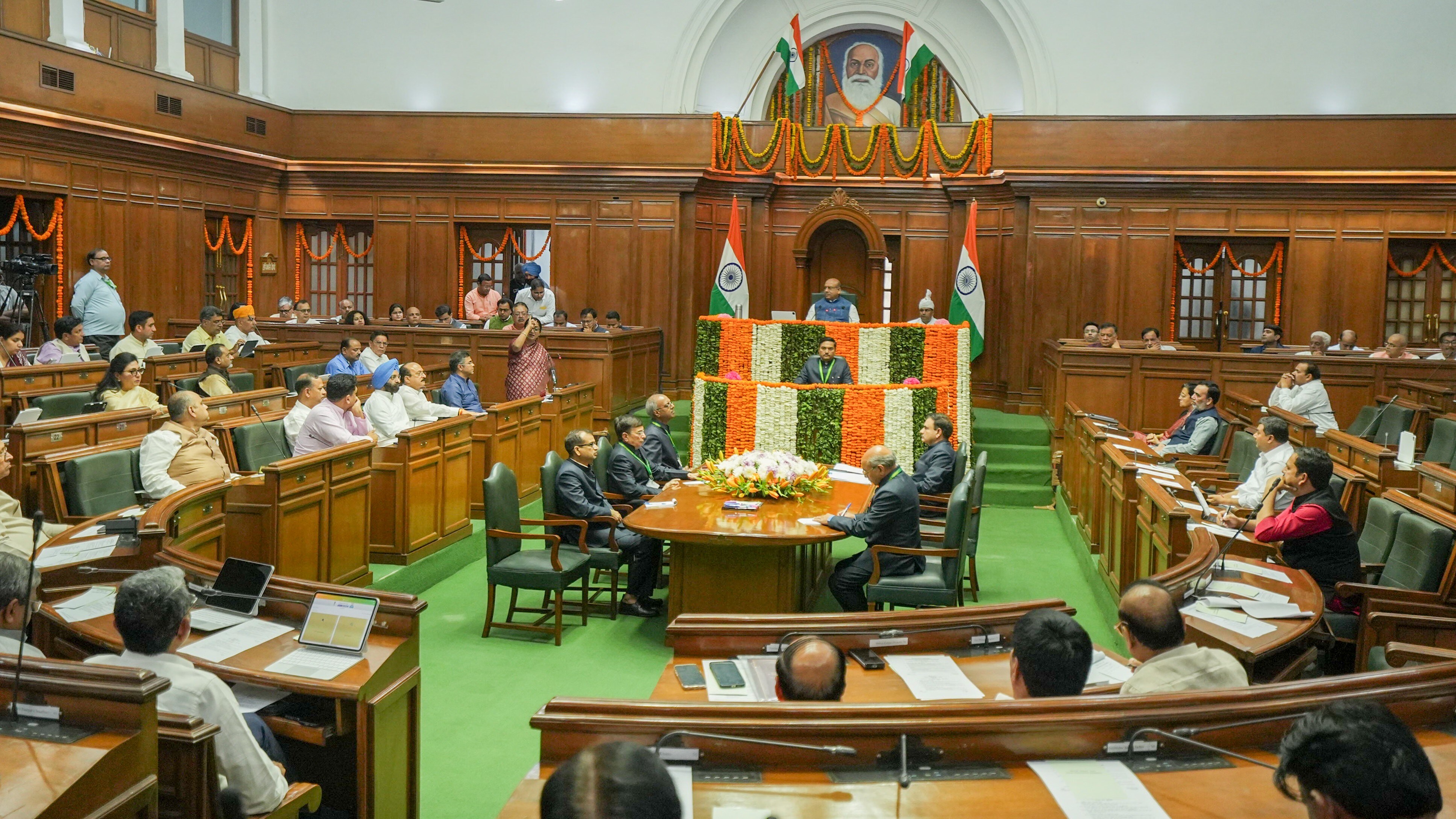 Delhi CM Rekha Gupta presents the Budget 2025-26 in the Assembly, in New Delhi, Tuesday, March 25, 2025. (Photographer: PTI Photo/Arun Sharma)