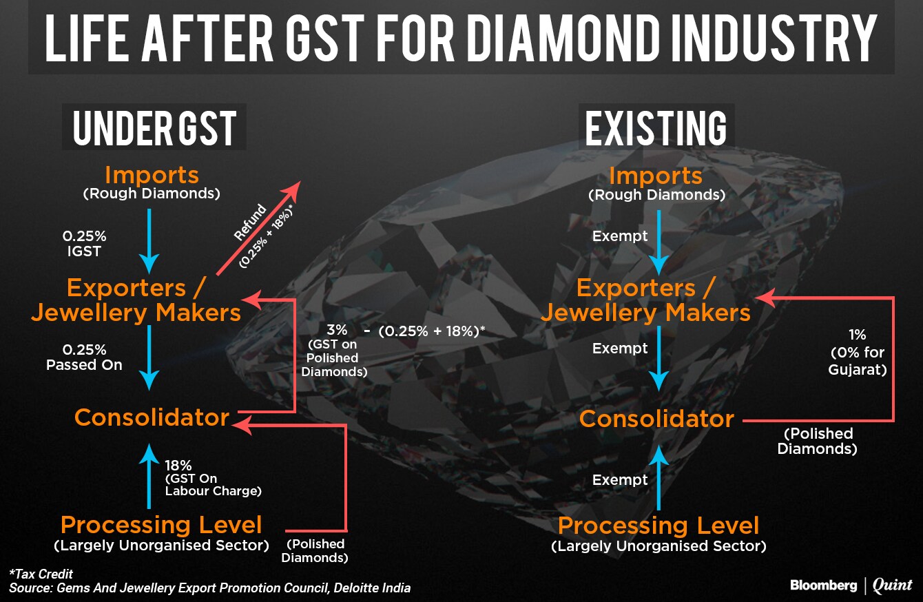 That's not the only worry for diamond traders though. The tax on polished stones has been increased three-fold to 3 percent under GST. Earlier, a value-added tax of 1 percent was levied in all states except Gujarat.