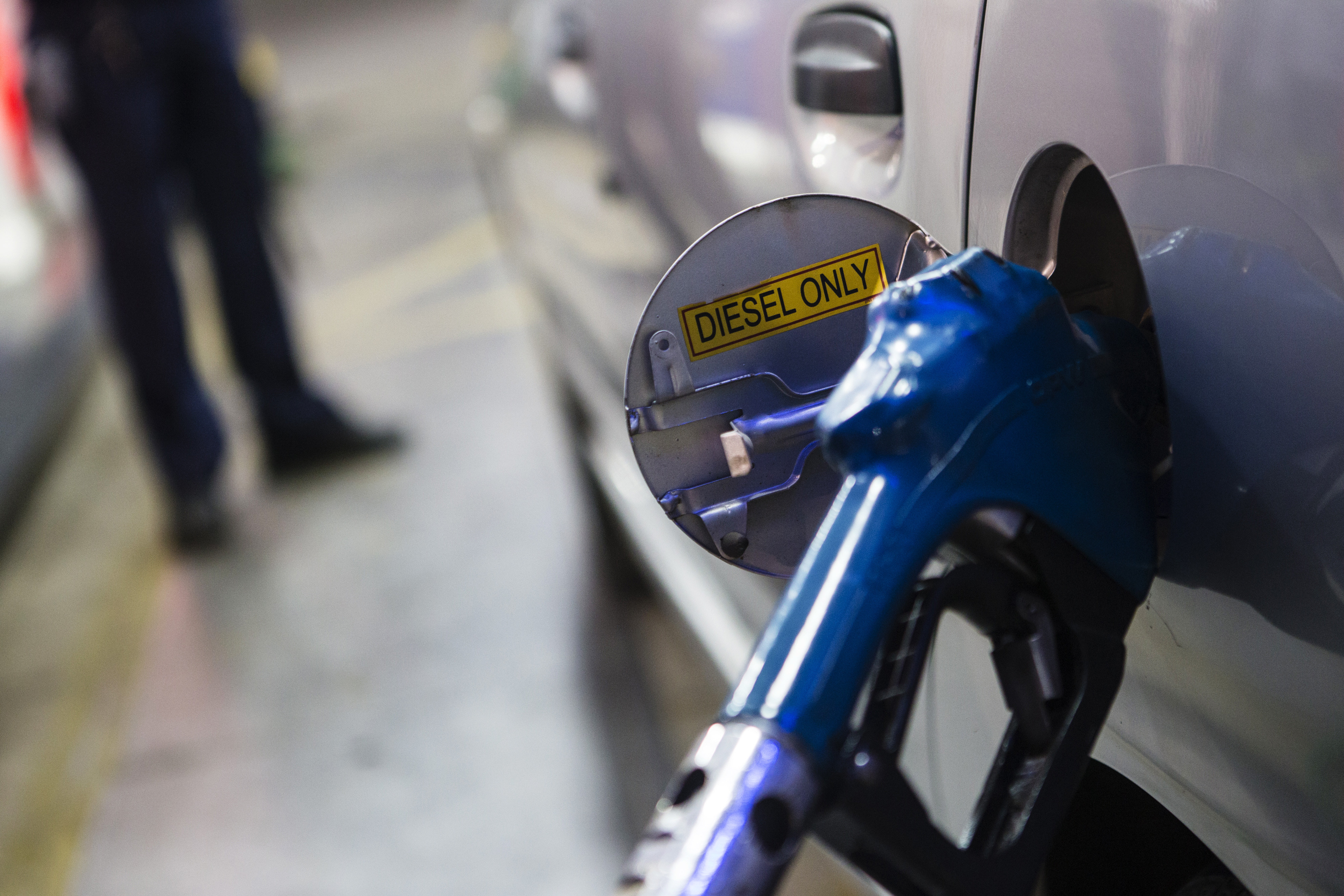 A diesel fuel pump sits in the gas tank of a customer’s vehicle (Prashanth Vishwanathan/Bloomberg)