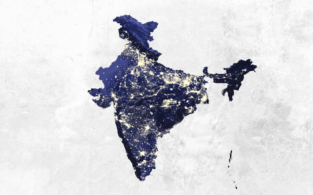 Using satellite images, India's nighttime luminosity is compared between 2012 and 2021.