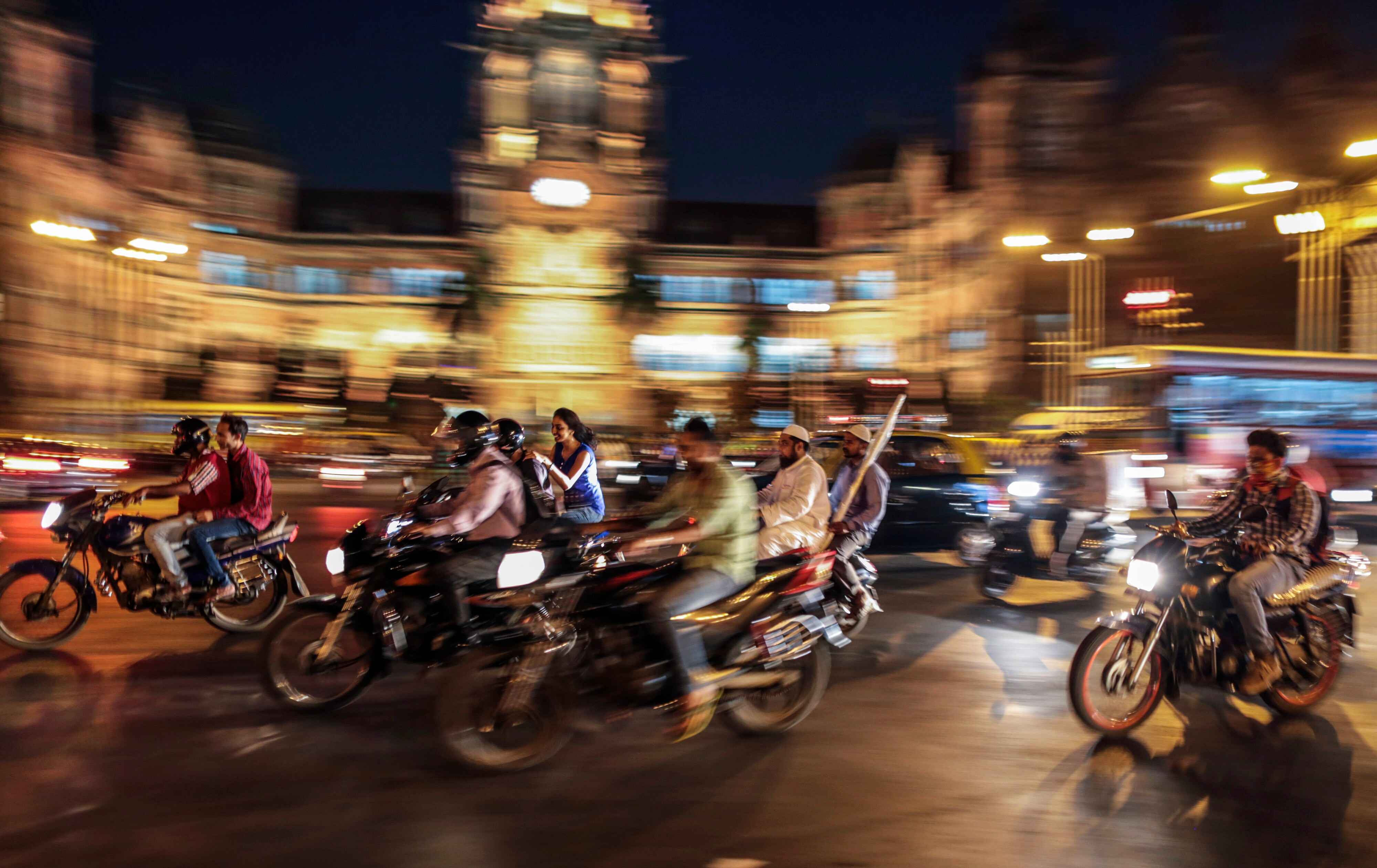 Traffic passes the Chhatrapati Shivaji Terminus railway station in Mumbai. (Photographer: Dhiraj Singh/Bloomberg)