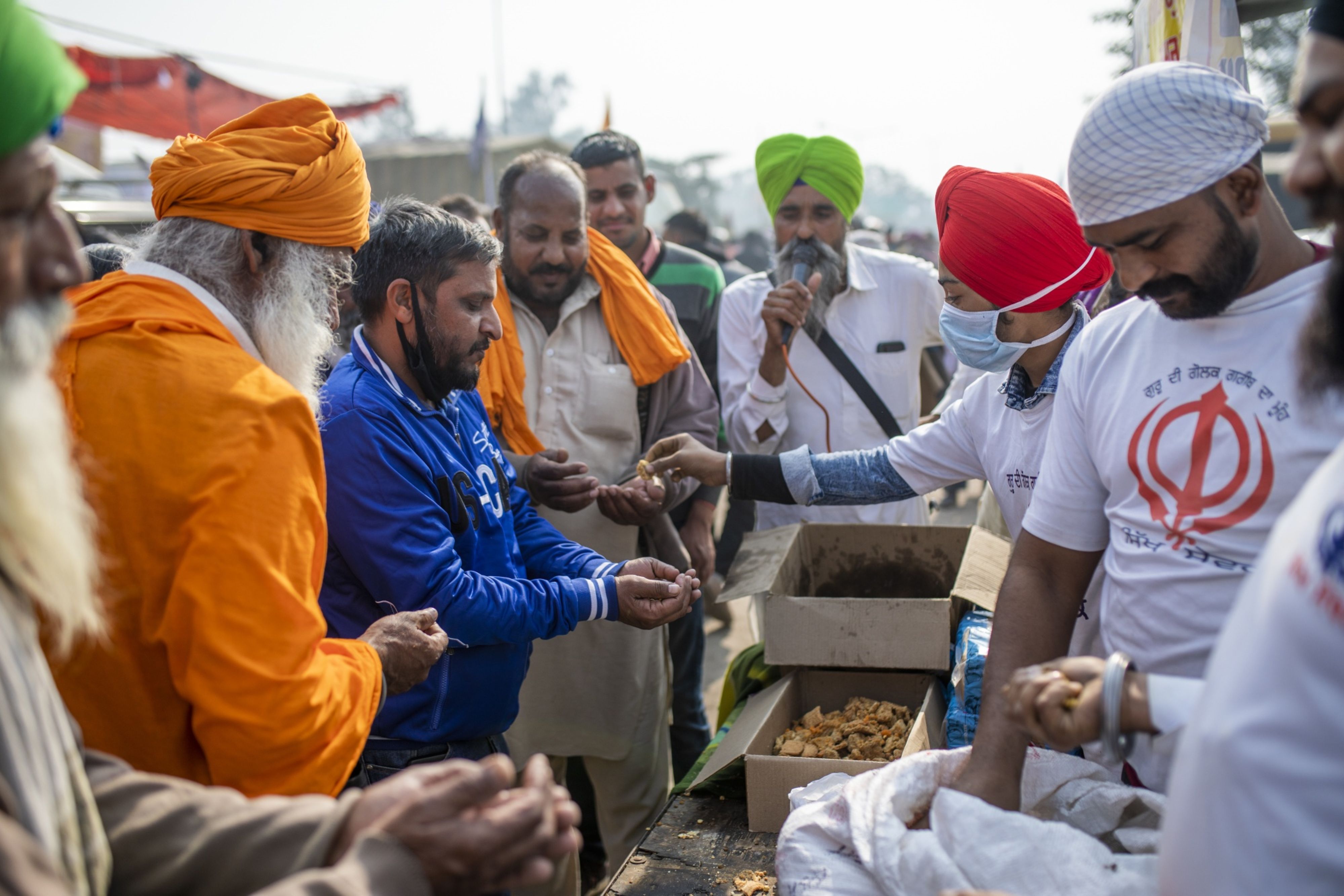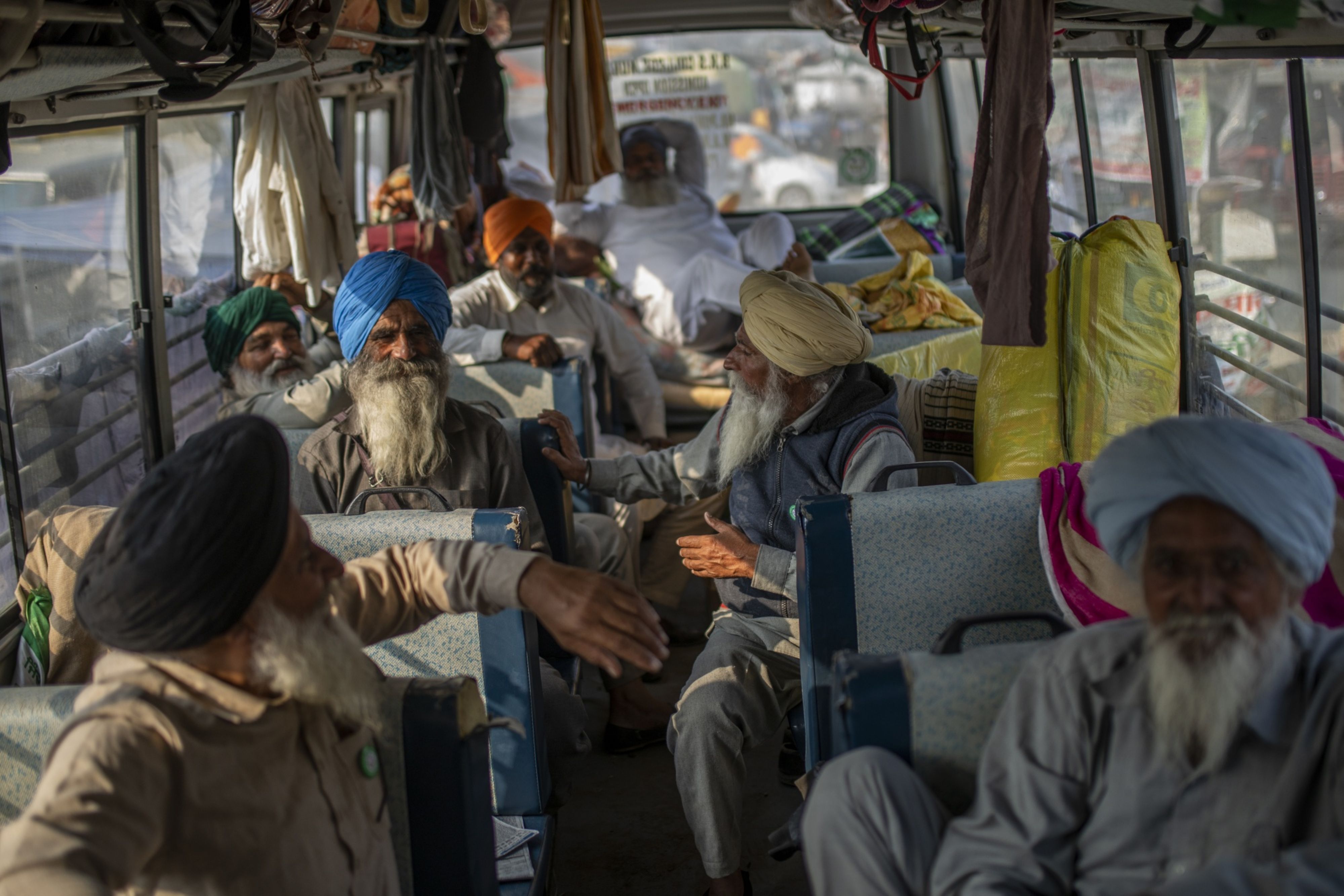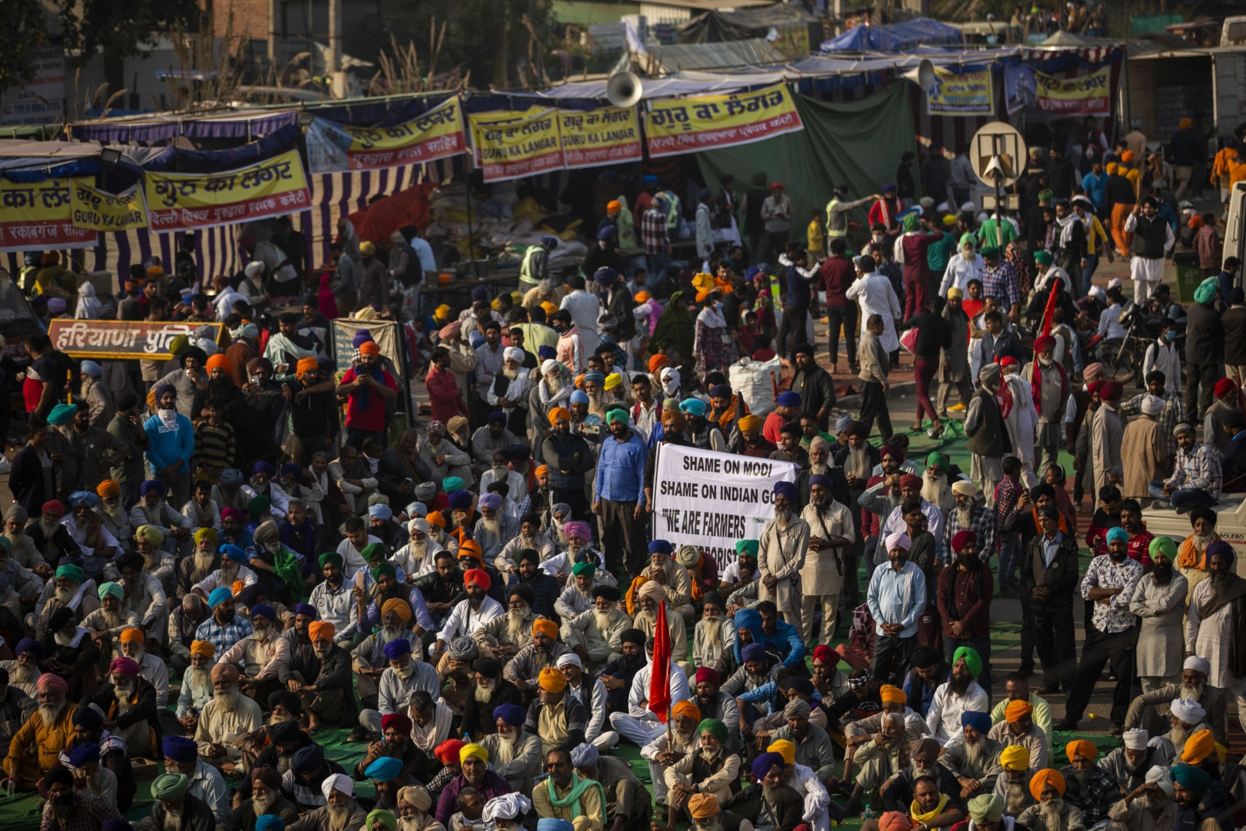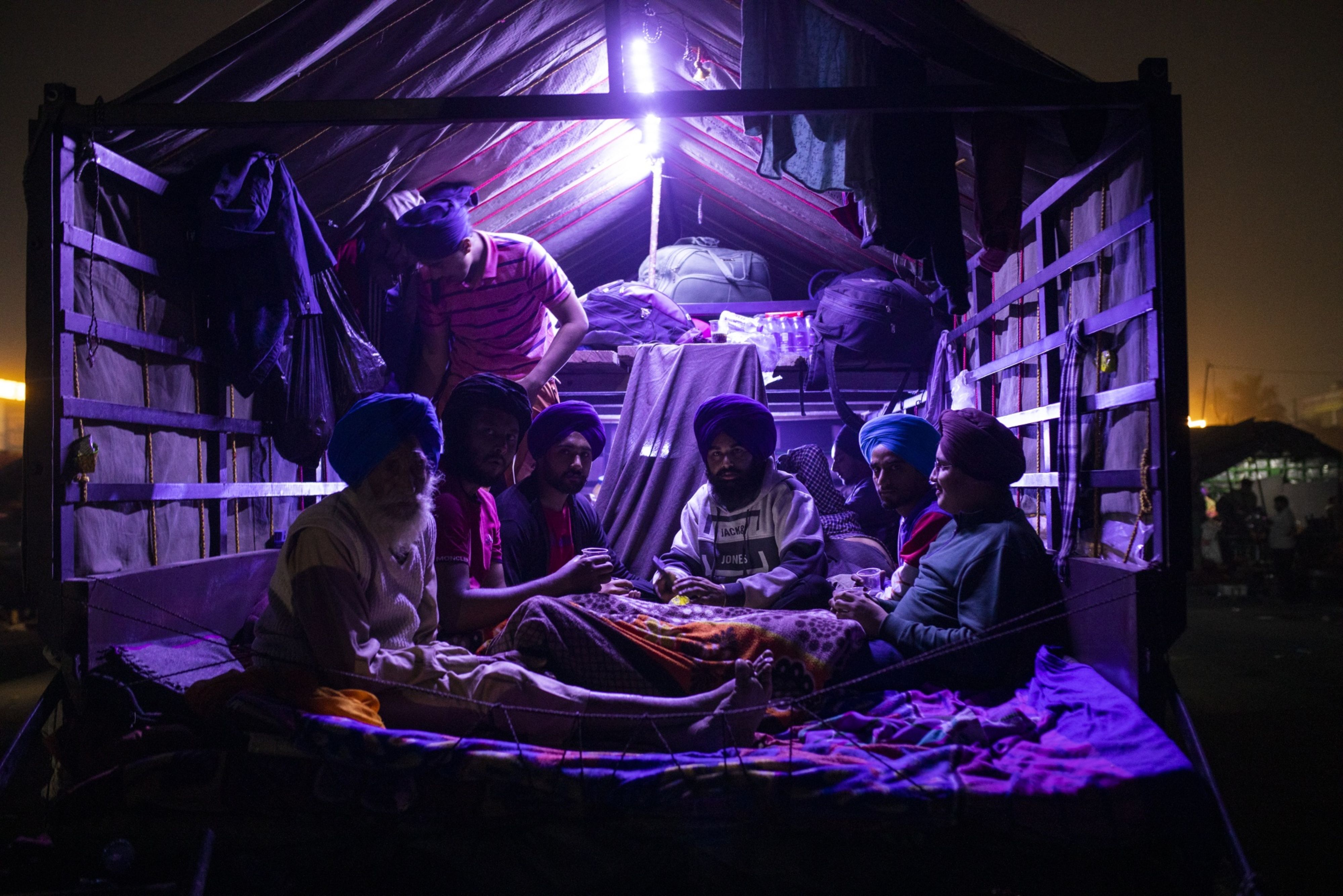 Farmers gather at a protest site on the Delhi-Haryana border crossing in Singhu, Delhi, India. Photographer: Prashanth Vishwanathan/Bloomberg