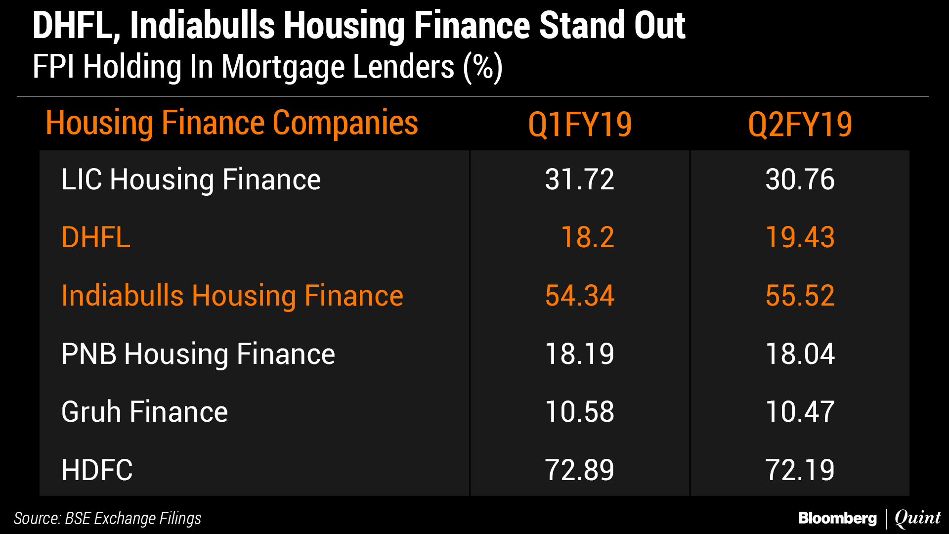 Shares of Dewan Hosing and Indiabulls Housing Finance have fallen nearly 62.1 percent and 24.3 percent, respectively, since June 30, according to Bloomberg data. The latest slide in stock prices came after defaults at IL&FS group companies triggered a liquidity crunch for non-bank lenders in September.