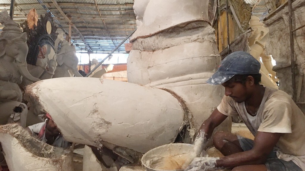 Last year, one sack containing 25 kilos of Plaster of Paris cost Rs 155, this year it is about Rs 170. If we end up spending more, we will pass along the charge to the Mandal or the customer who is buying from us. But people have their beliefs and they are willing to compromise on the cost to offer their Puja.Raju Shinde, Idol-maker