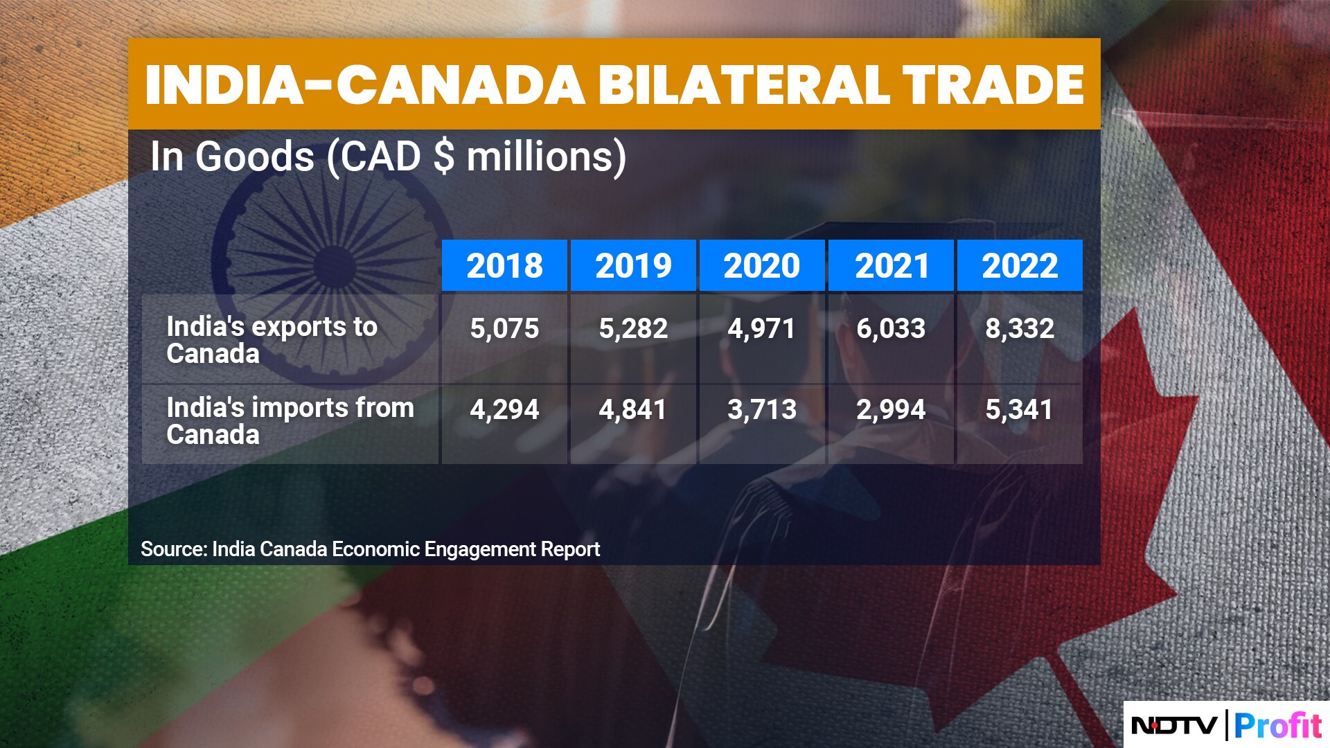 India and Canada's bilateral trade stood at approximately $19.4 billion in 2023, according to government data. The trade deficit was in favour of the North American country at $3.25 billion, largely on account of higher service exports. In terms of goods trade, India exported $5.56 billion and imported $3.8 billion.