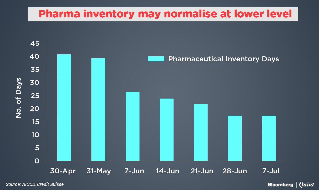 Data from the All India Organisation of Chemists and Druggists showed that the number of inventory days for pharmaceuticals dropped to 17 days by June-end from 41 days in April. Inventory days in the week after GST implementation remained largely the same implying that the “industry could have permanently adjusted to low inventory level”, said Mishra in his note.
