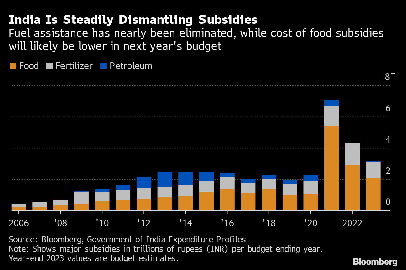 A review of budgets since Modi came to power shows he's been chipping away at subsidies, barring the pandemic years when assistance saw an increase.