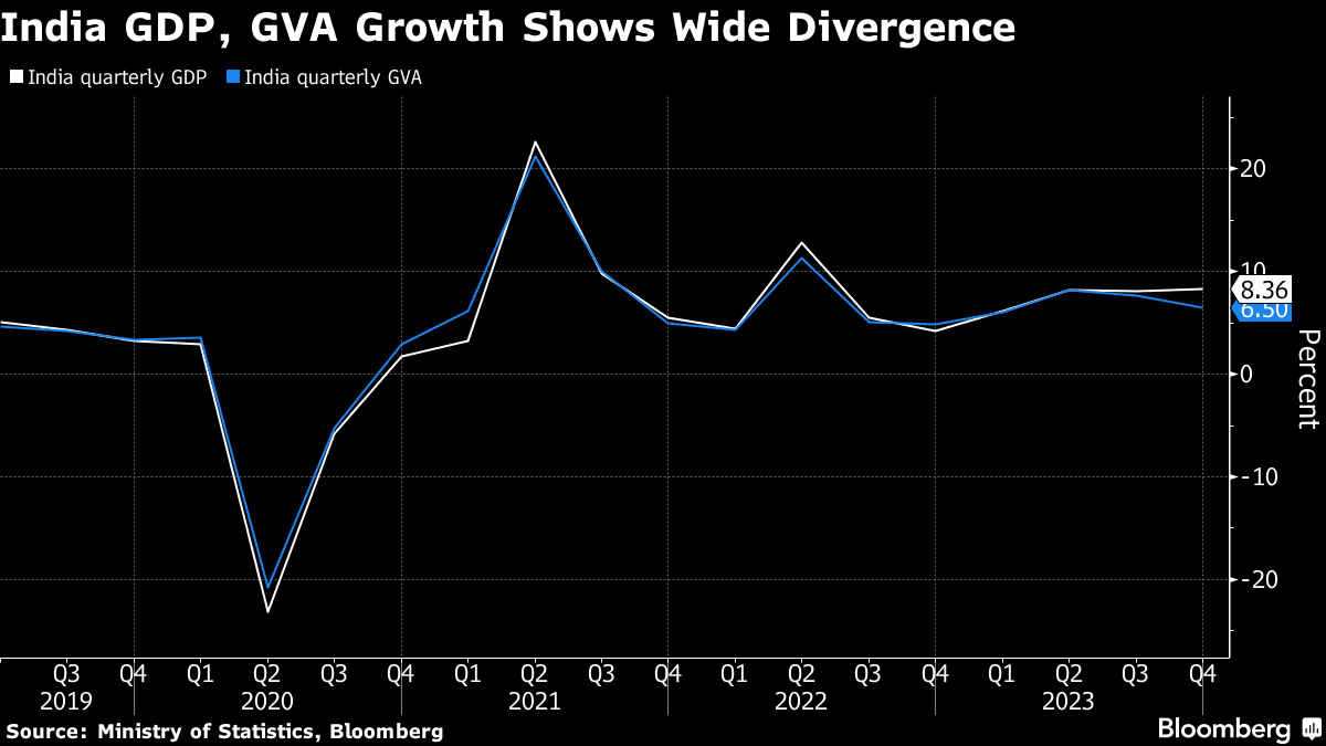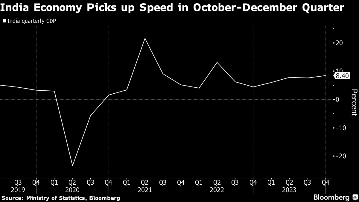 The surprise data comes just weeks before India heads to elections, with Prime Minister Narendra Modi seeking to extend his decade in power. The government also upgraded its growth projection for the current fiscal year through March to 7.6% from 7.3%, keeping India on track to be the world's fastest-growing major economy.