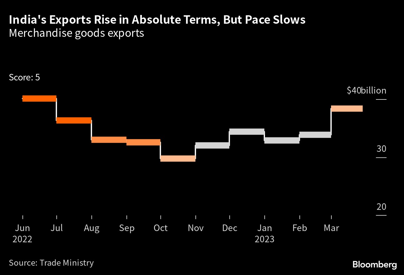 “Headwinds from a slowing global economy are beginning to weigh more on exports,” said Rahul Bajoria, economist at Barclays Plc. Electronics exports gained traction, rising 57% in March from a year ago as major mobile equipment manufacturers are setting up production units in India with the China-plus-one strategy gaining ground, he said.